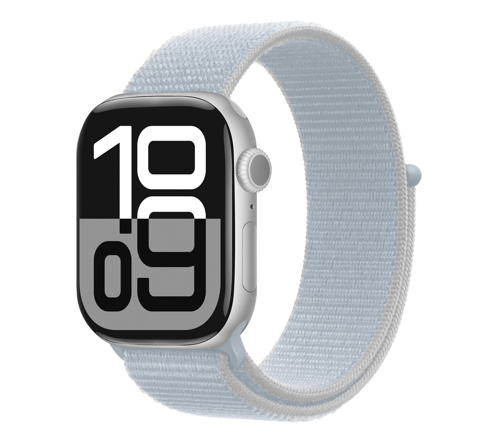 Includes Apple Watch Series 10 42mm with Sport Loop band and magnetic charging cable; stand, silicone band, and voucher