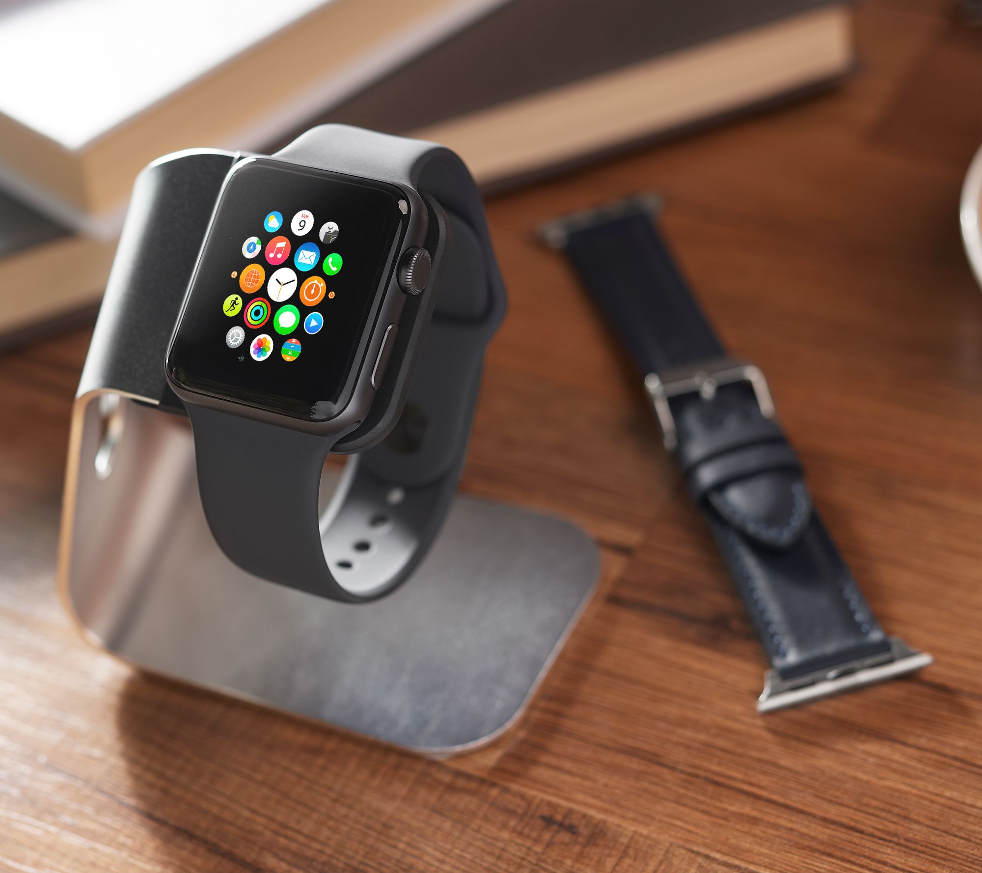 Personalize your look with the included leather strap, and boost your juice with the aluminum charging stand.