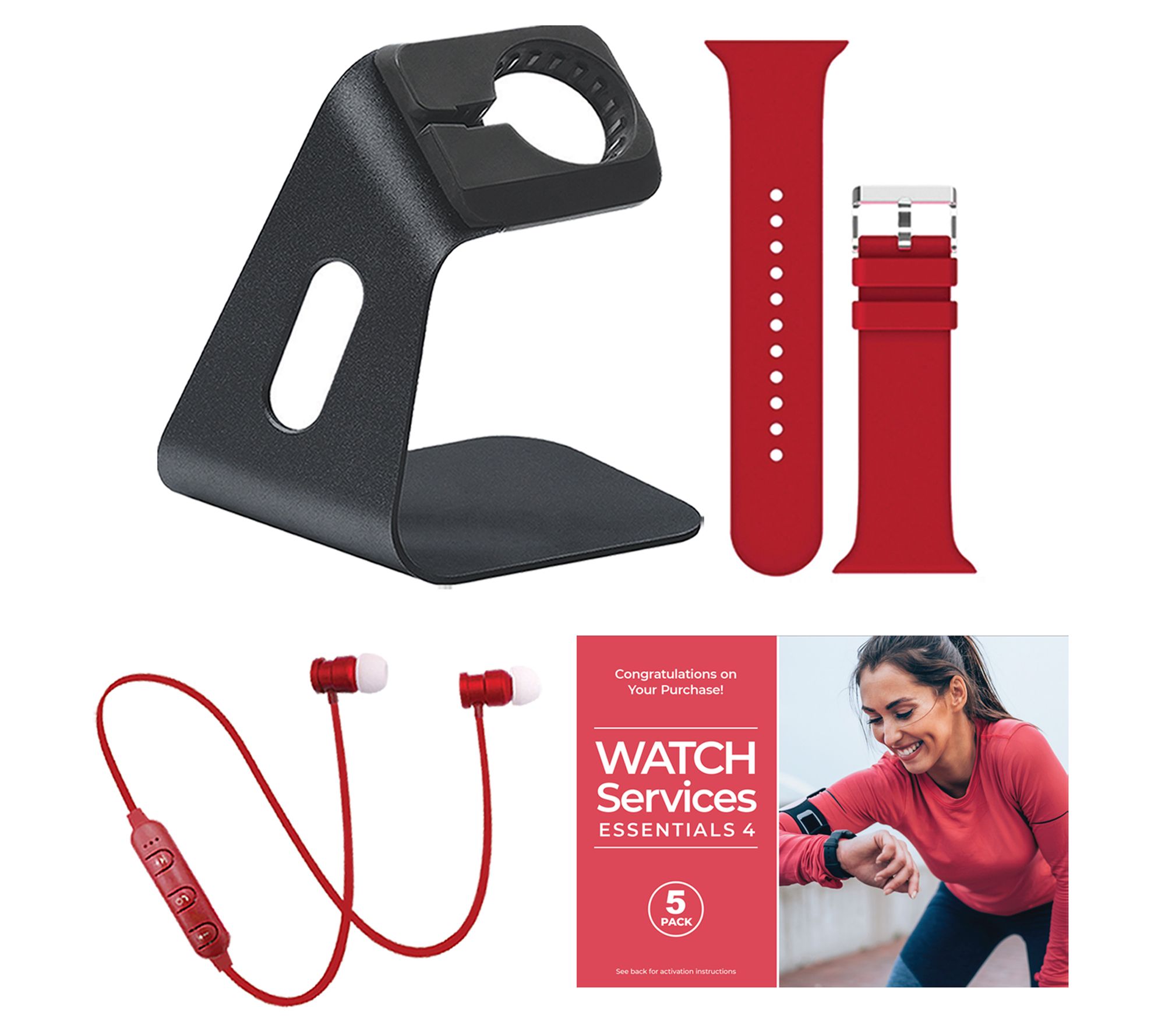 Includes Apple Watch Ultra 49mm with small Alpine Loop band and magnetic charging cable; charging stand, additional band, Bluetooth earbuds, and voucher
