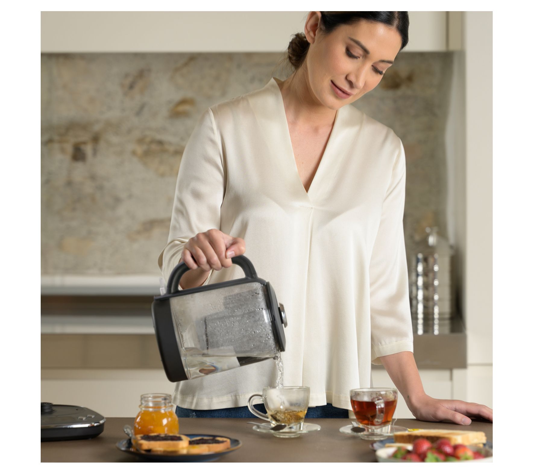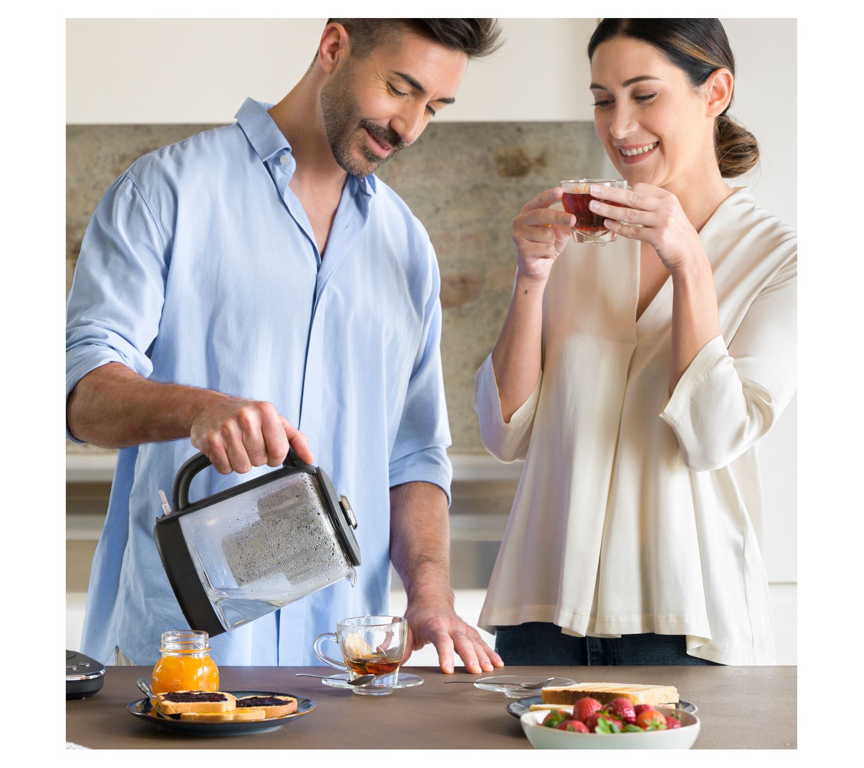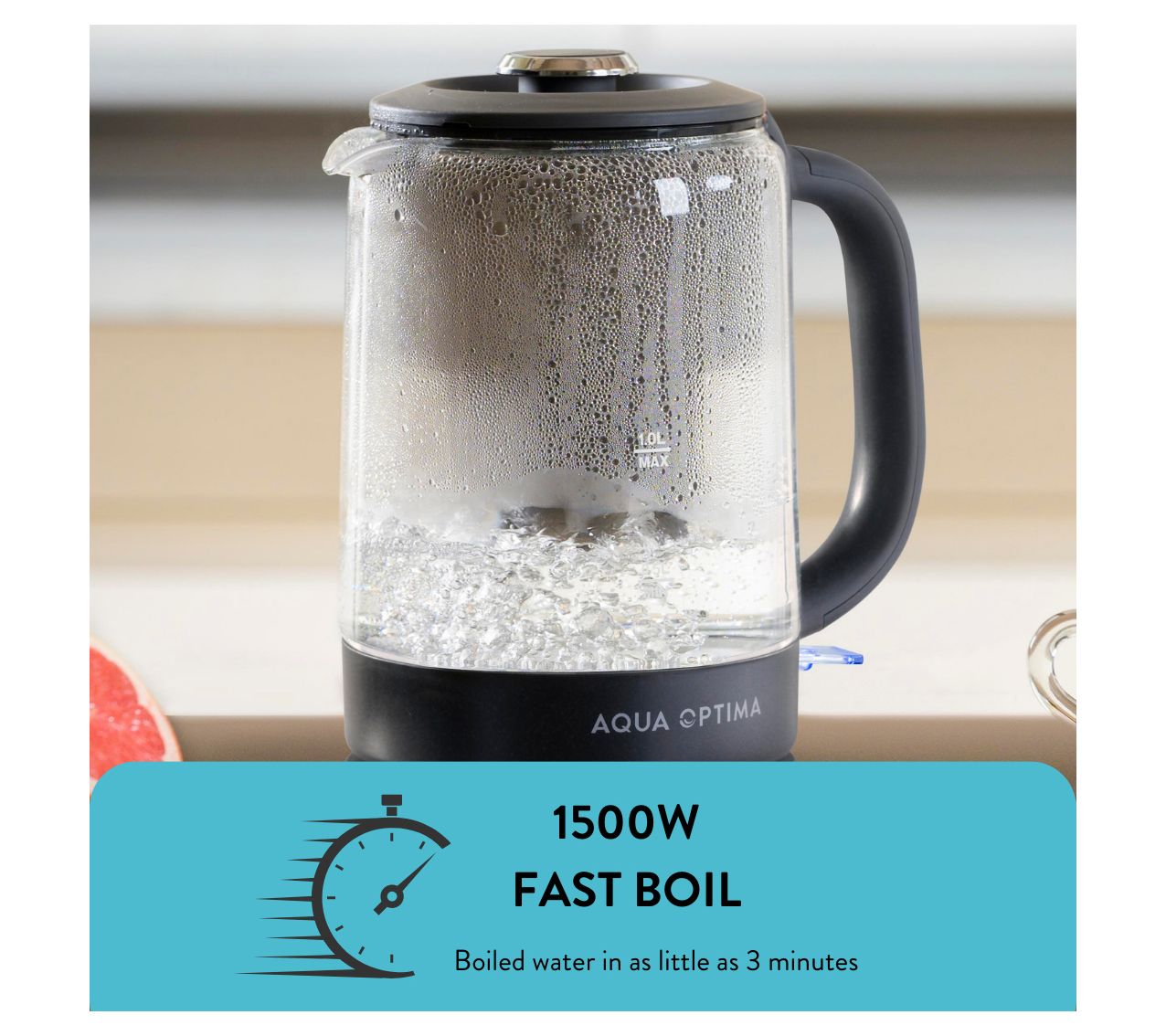 Elevate your morning ritual with the Aqua Optima Glass Electric Kettle, featuring Strix Trueboil Technology and Evolve+ Filtration for the perfect brew. From Aqua Optima.