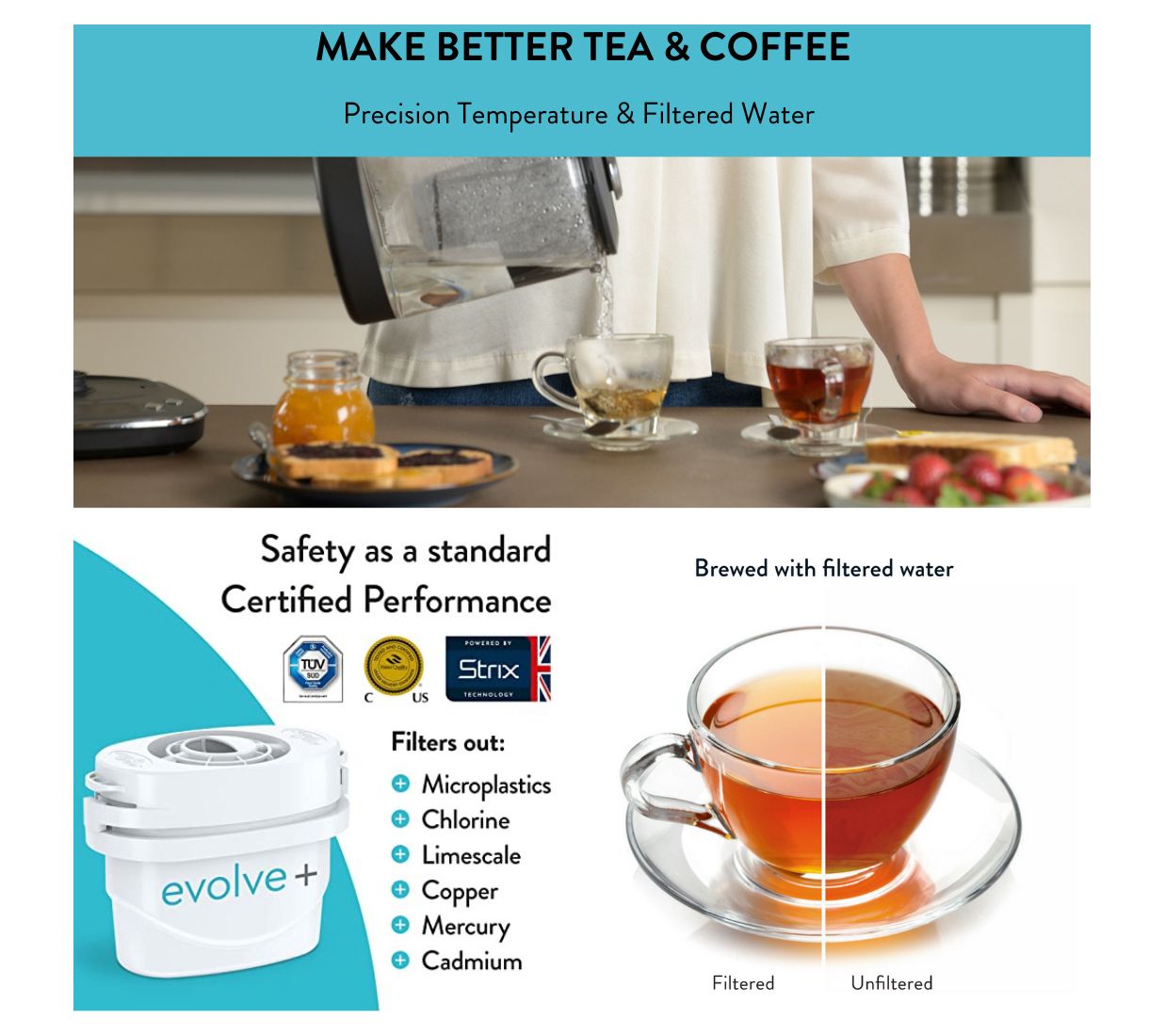 • Strix Trueboil Technology and Evolve+ water filtration