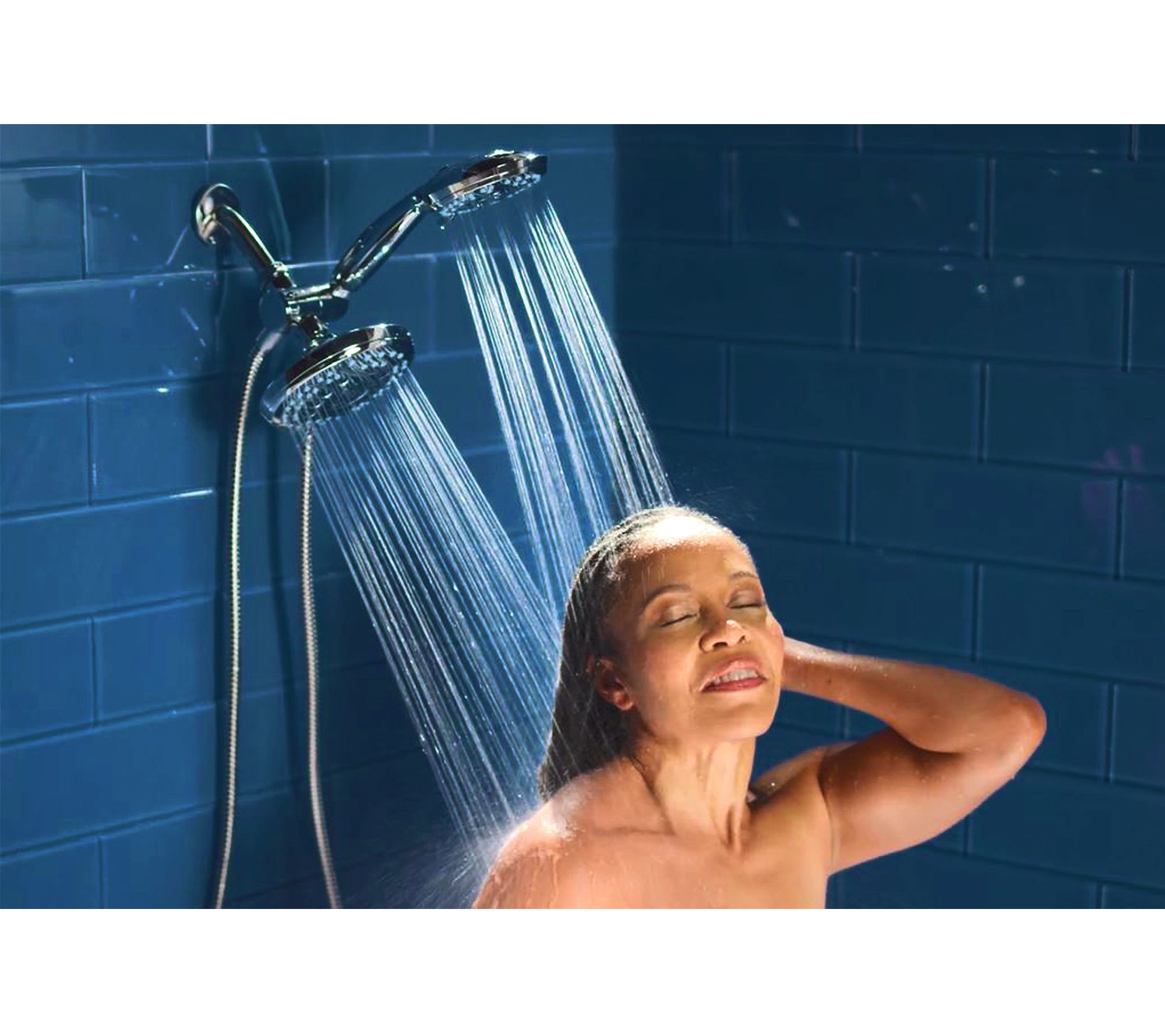 A three-way diverter lets you use the shower head, hand shower, or a combination of both at the same time. Easily adjust the angle to suit your preference.