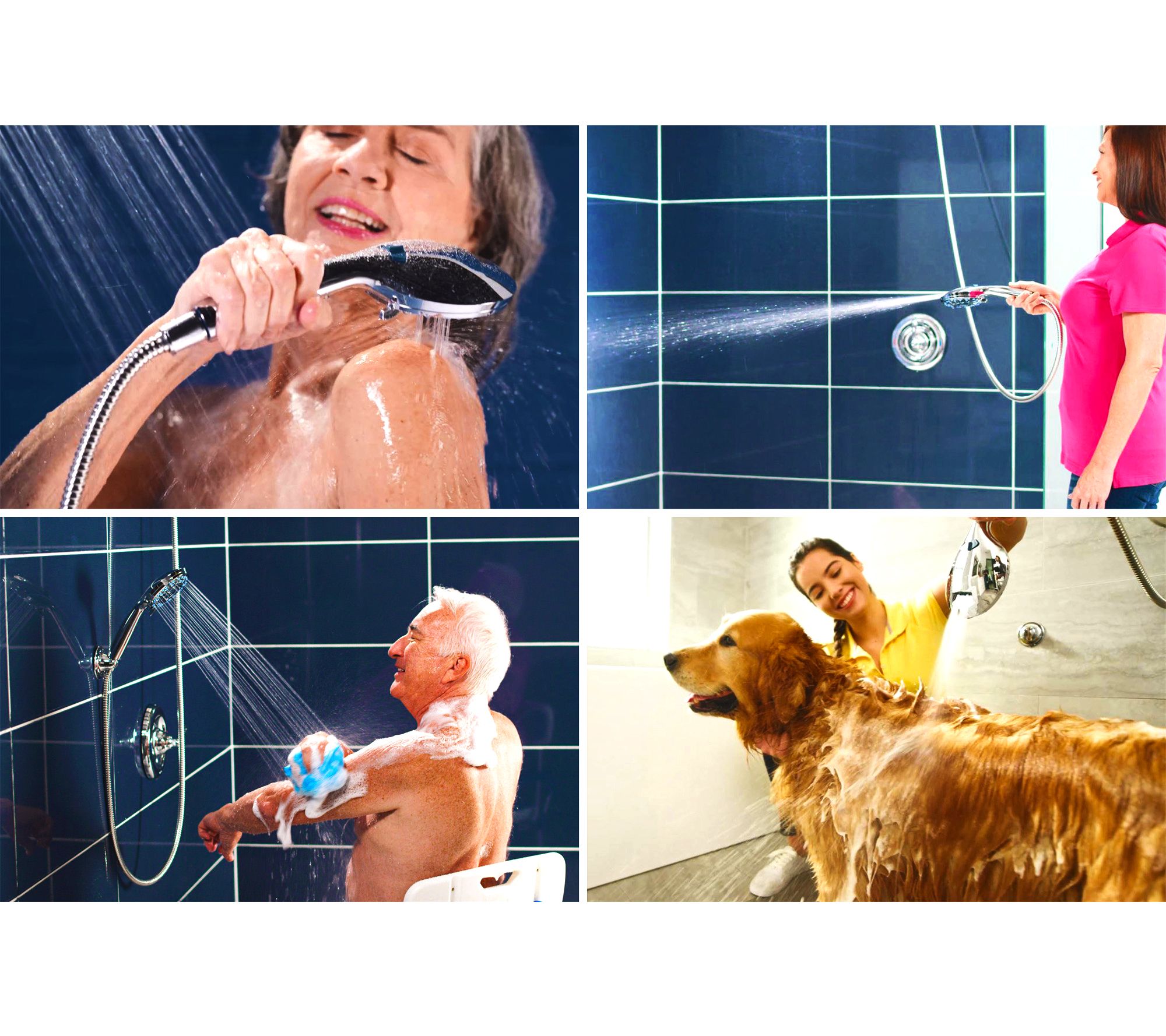 Use the handheld's built-in power wash function to clean your tub and tile. Point Jet mode targets stubborn soap scum and Wide Fan mode quickly rinses away soap suds and residue.
