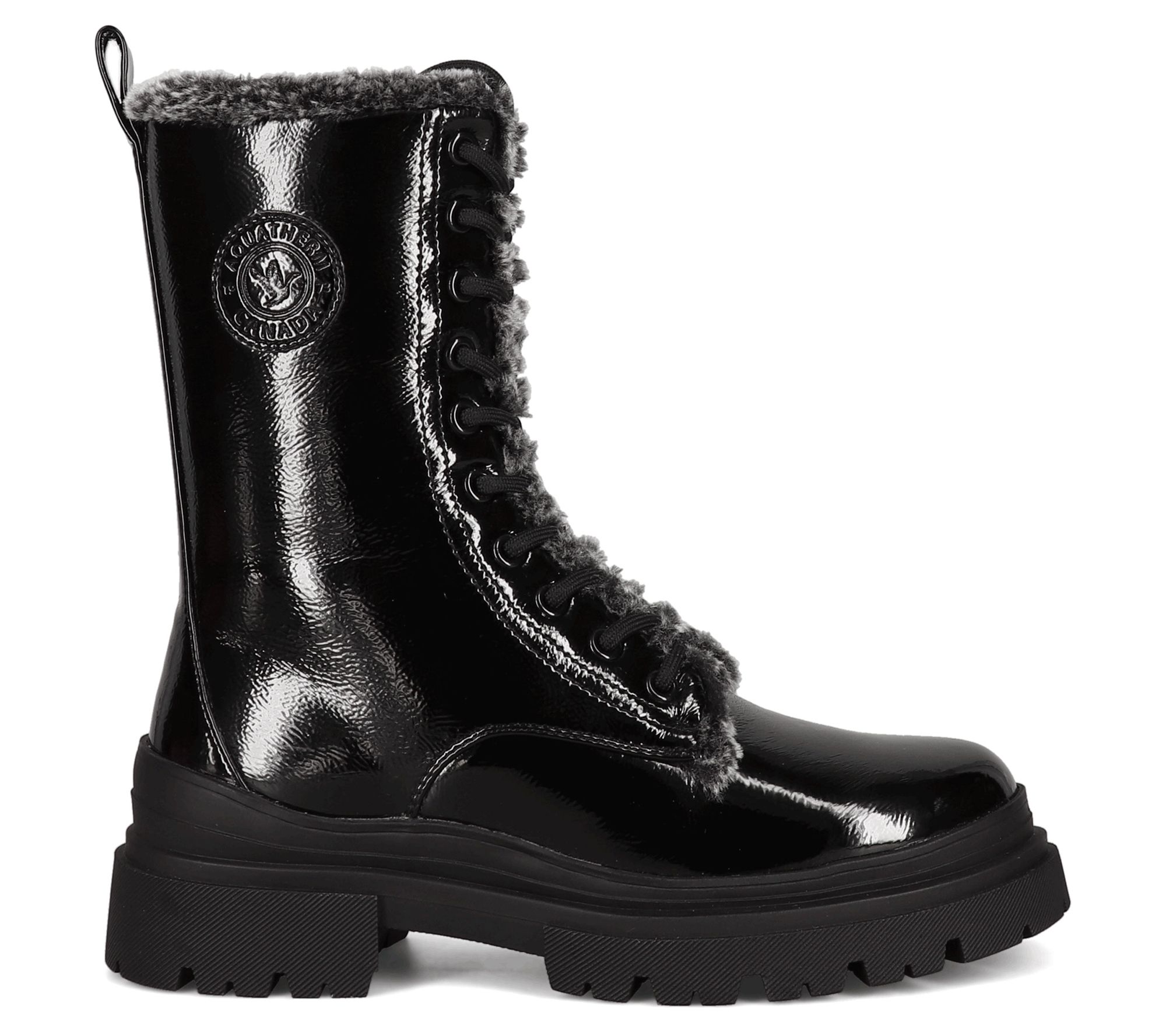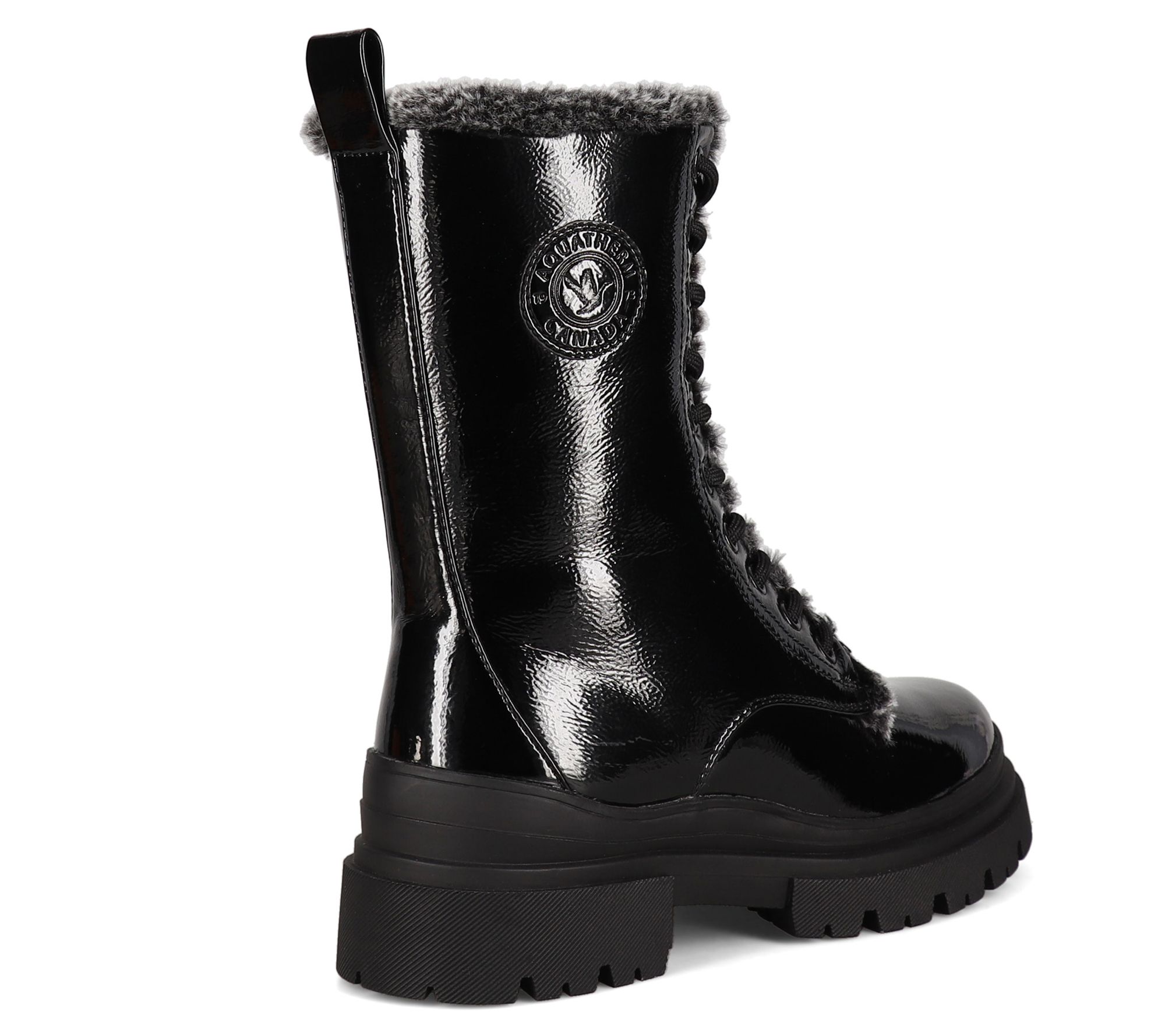 Face the elements in fierce style with these shiny patent boots that keep your tootsies toasty on chilly days. From Aquatherm Canada.