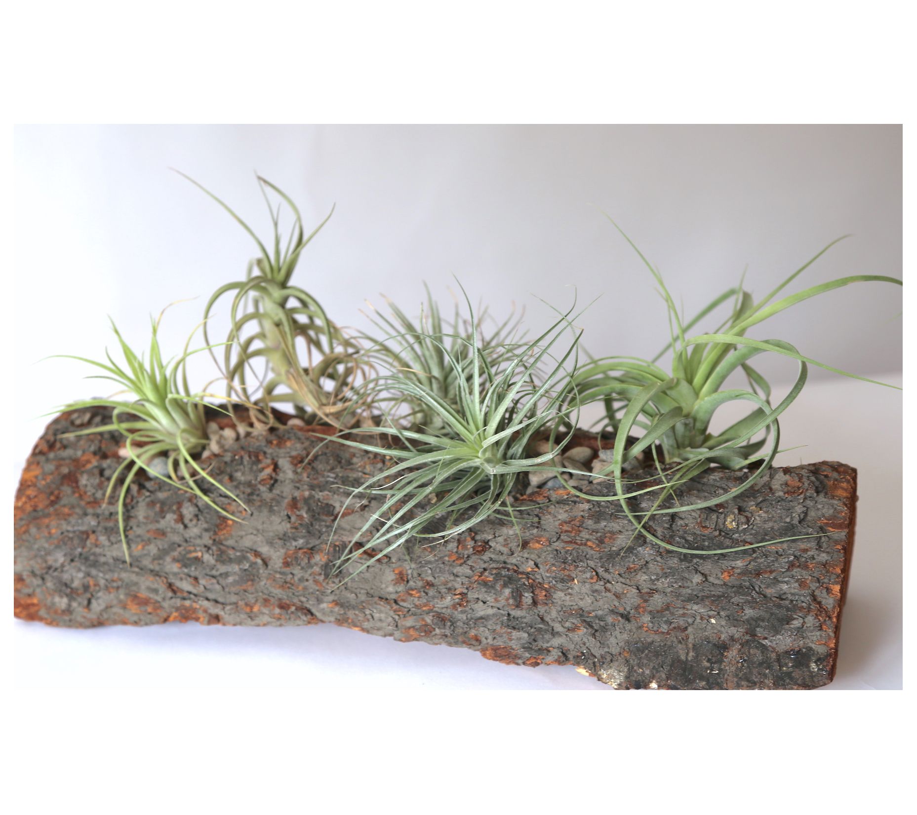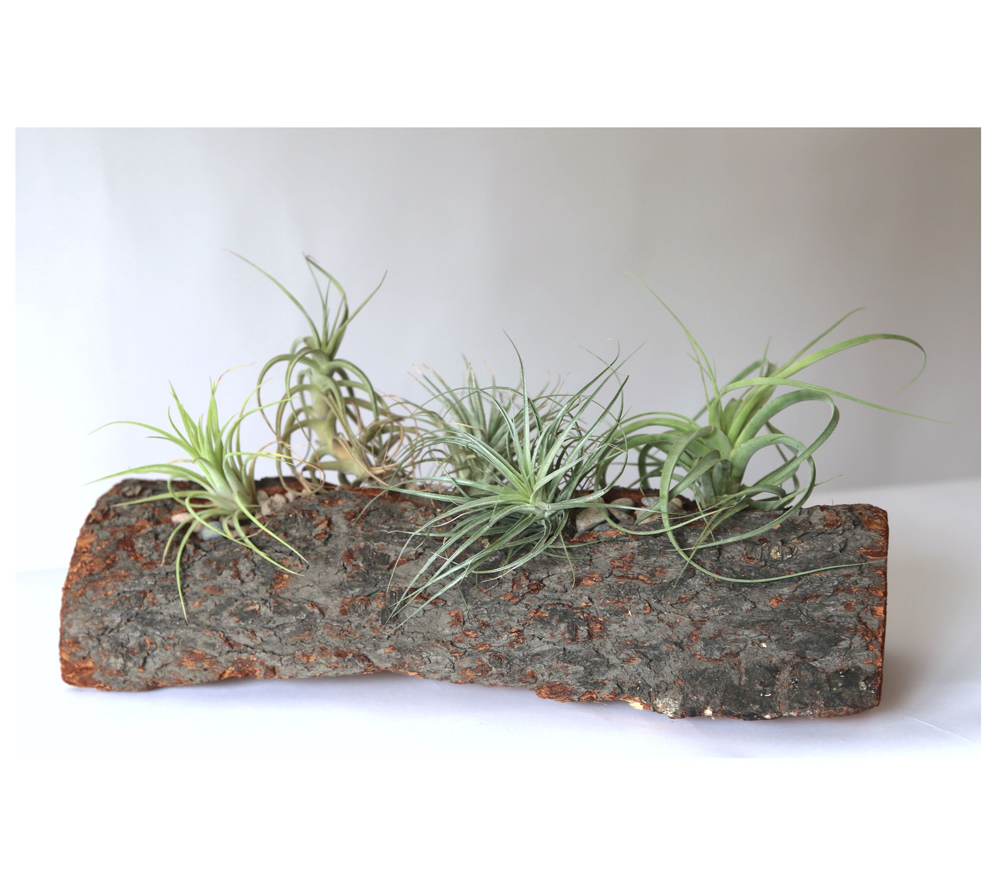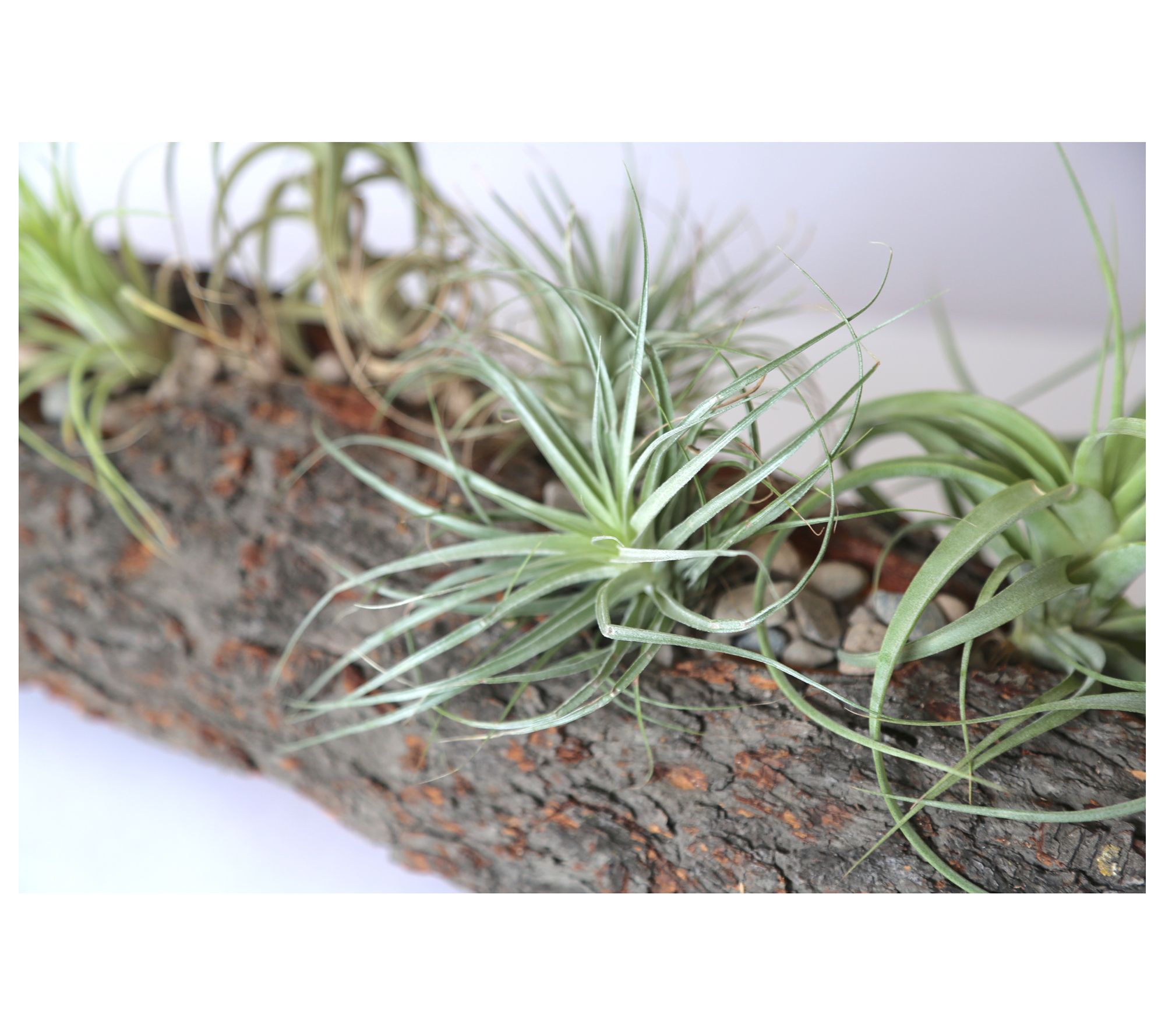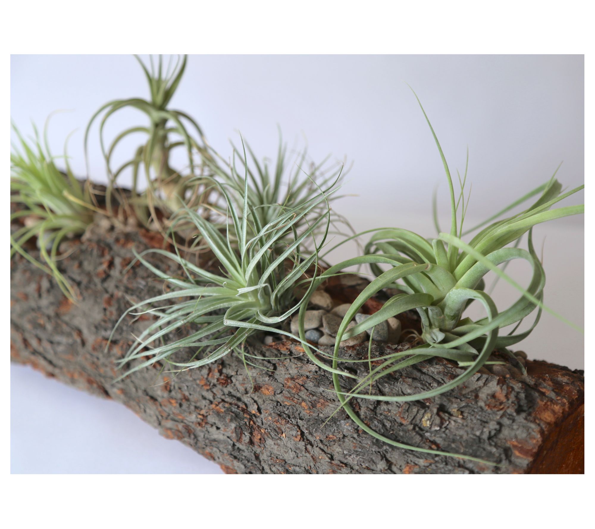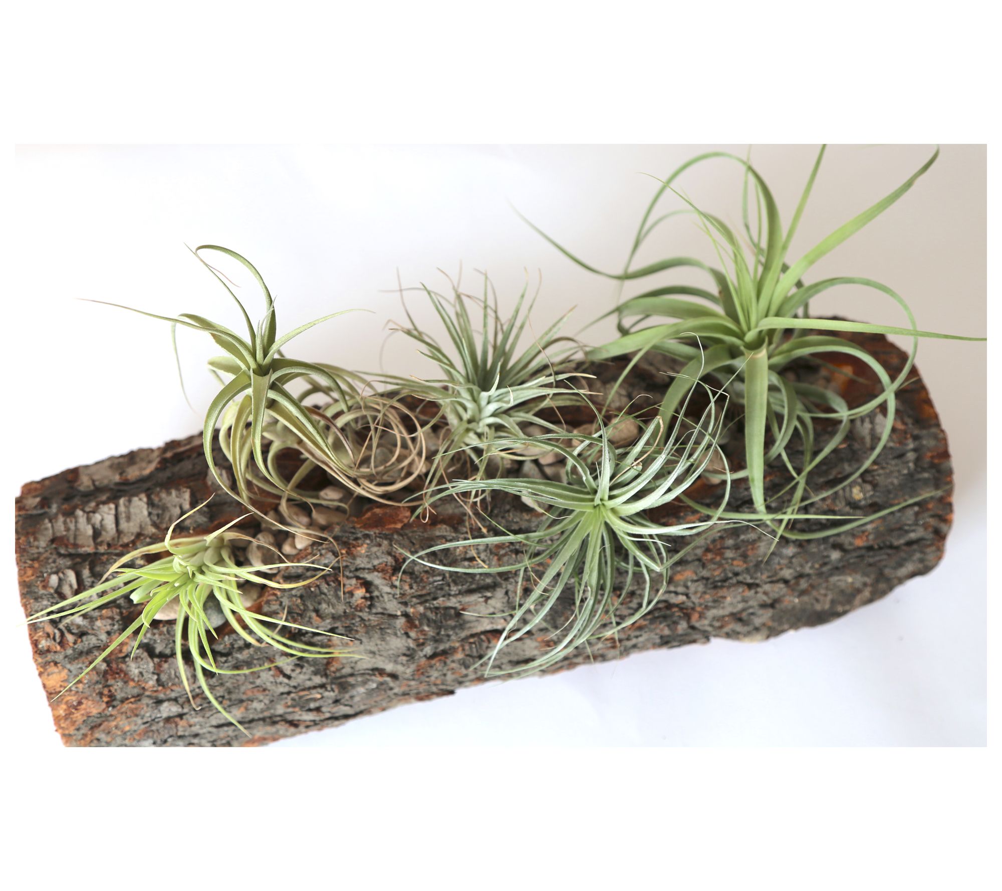 Make a beautiful statement in your home with the Arabella centerpiece, featuring five stunning air plants tucked away in an earthy carved log planter. From Wood and Wine Succulents.