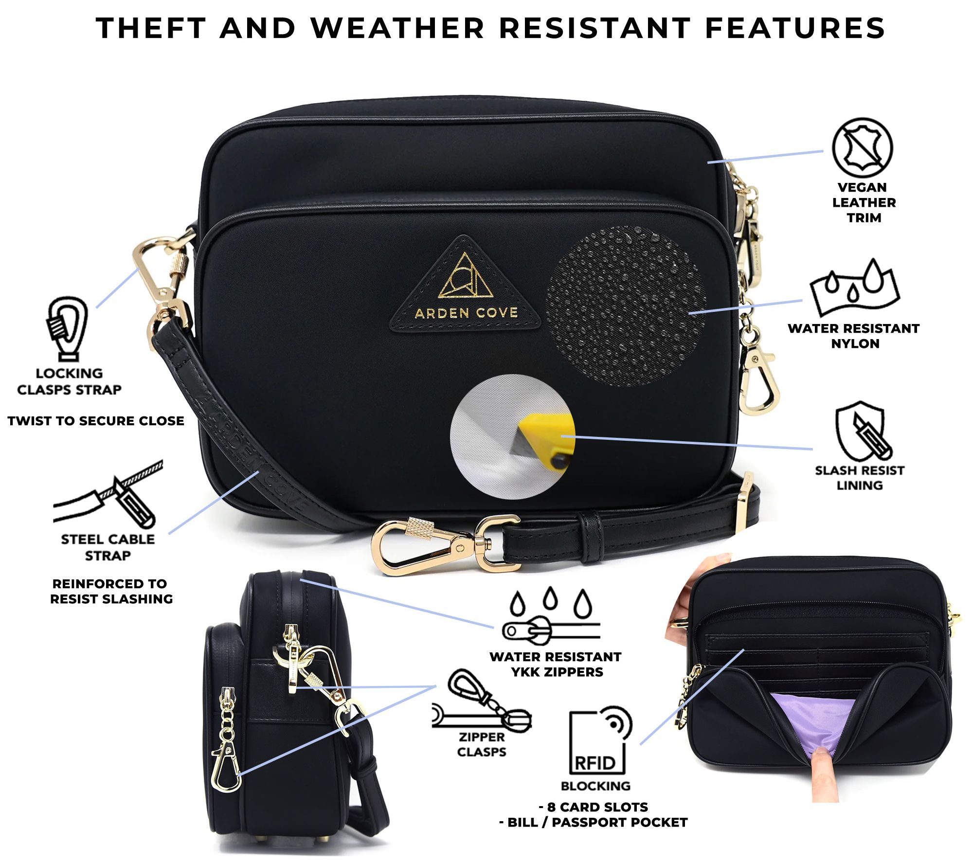Whether you're exploring a new locale or running errands locally, this stylish Crissy crossbody is the perfect companion. With anti-theft features and a hands-free design, it will keep your essentials protected and organized. From Arden Cove.