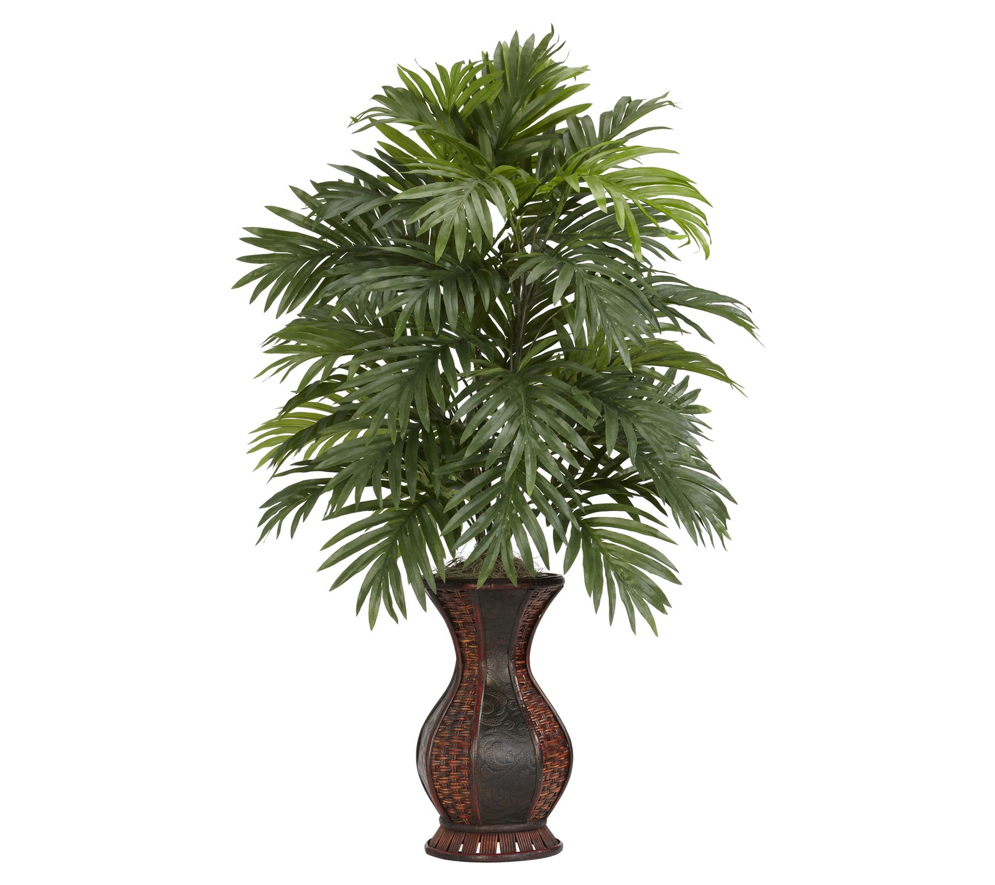 This artificial Areca Palm boasts plentiful fronds and stands in a stylish planter making it the perfect accent for a living room, office, or reception area. From Nearly Natural.