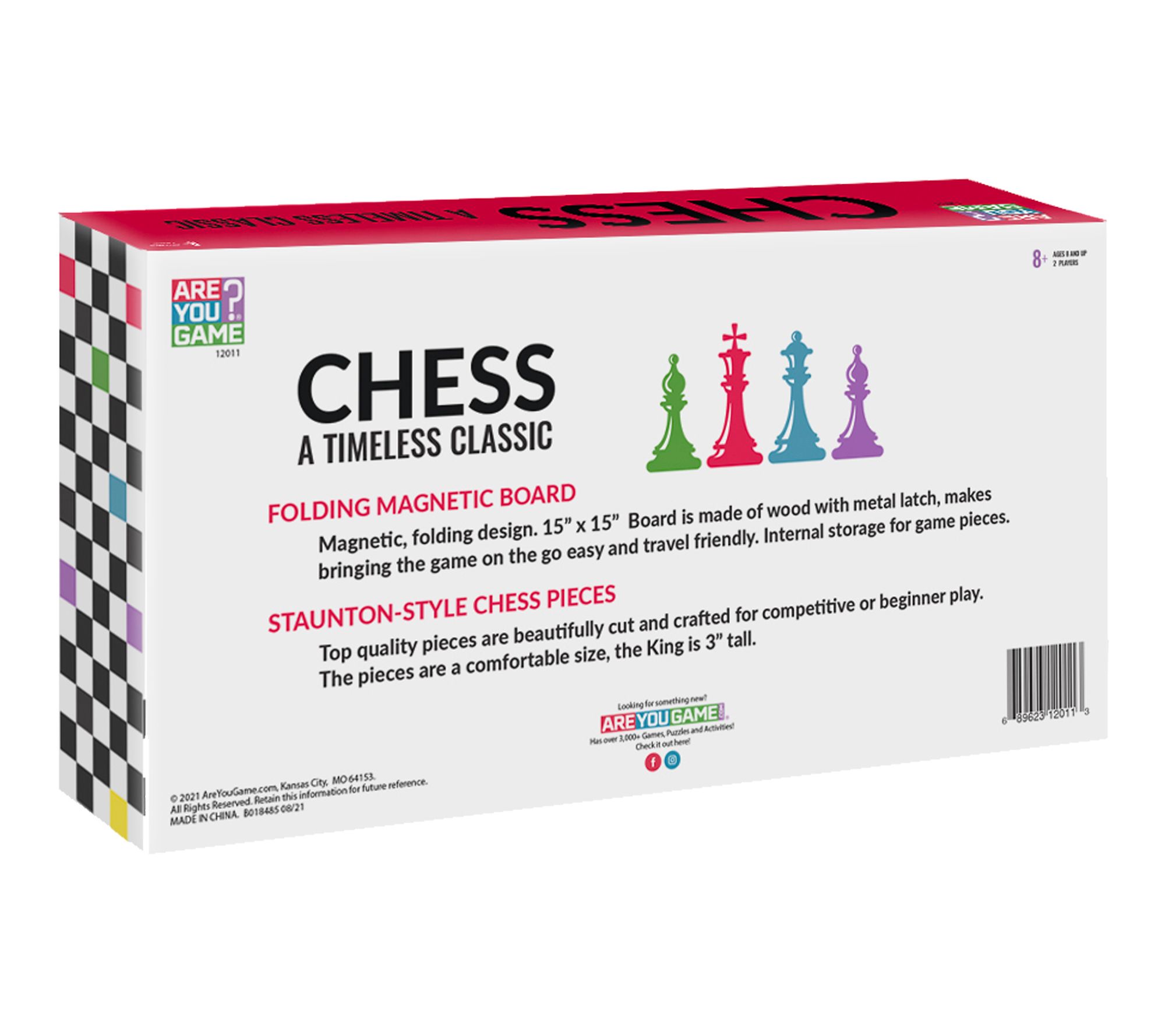 • Includes folding magnetic board, 32 chess pieces, storage pouch, and instruction booklet