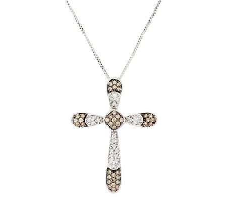 Let it shine. Wear this sterling silver cross pendant whenever you want to beautifully display your faith. The brilliant design showcases pave-set, round champagne diamonds in black rhodium and pave-set, round white diamonds in white rhodium. From the Argyle Diamond Collection.