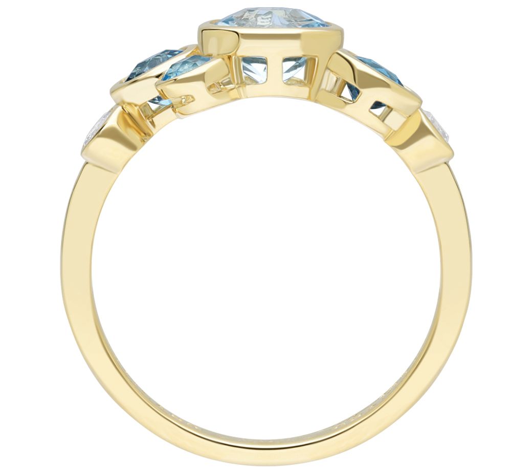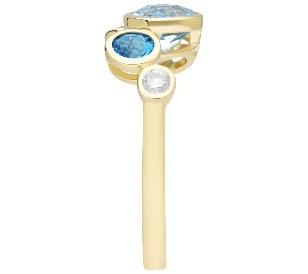 Bask in the beauty of the color of blue with this diamond-accented ring that brings together Sky, London, and Swiss blue topaz in a host of hues. From Ariva.