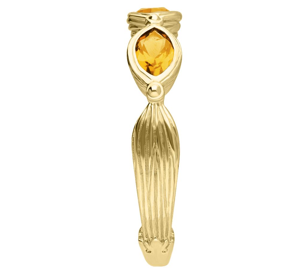 - Silk textured sides and shank with three marquise-cut citrine gemstones