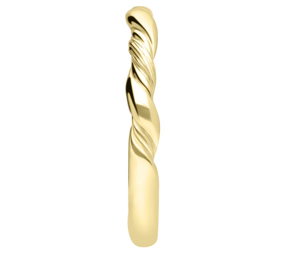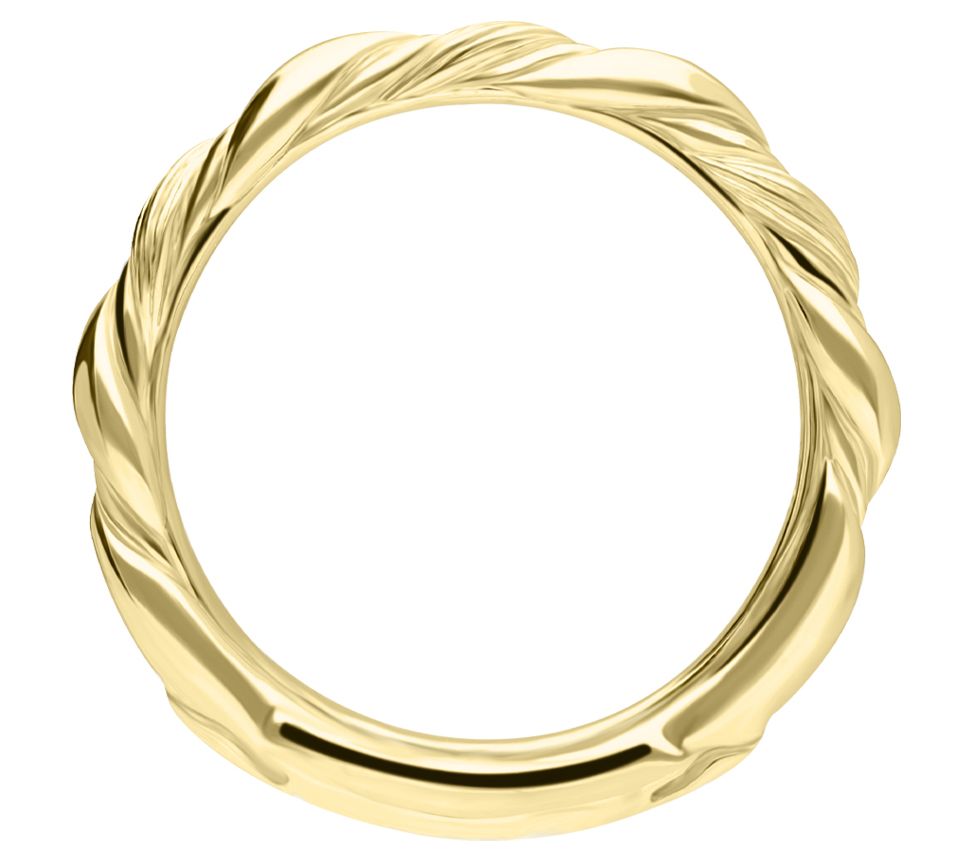 • Twisted band ring; silk texture; polished finish