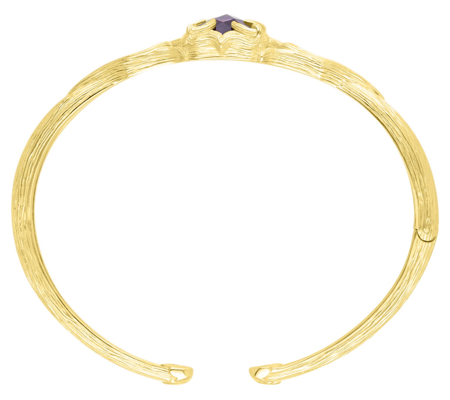 A vine-textured 18K yellow gold-clad cuff bracelet with a dazzling amethyst gemstone at the center? Yes, please. From Ariva.