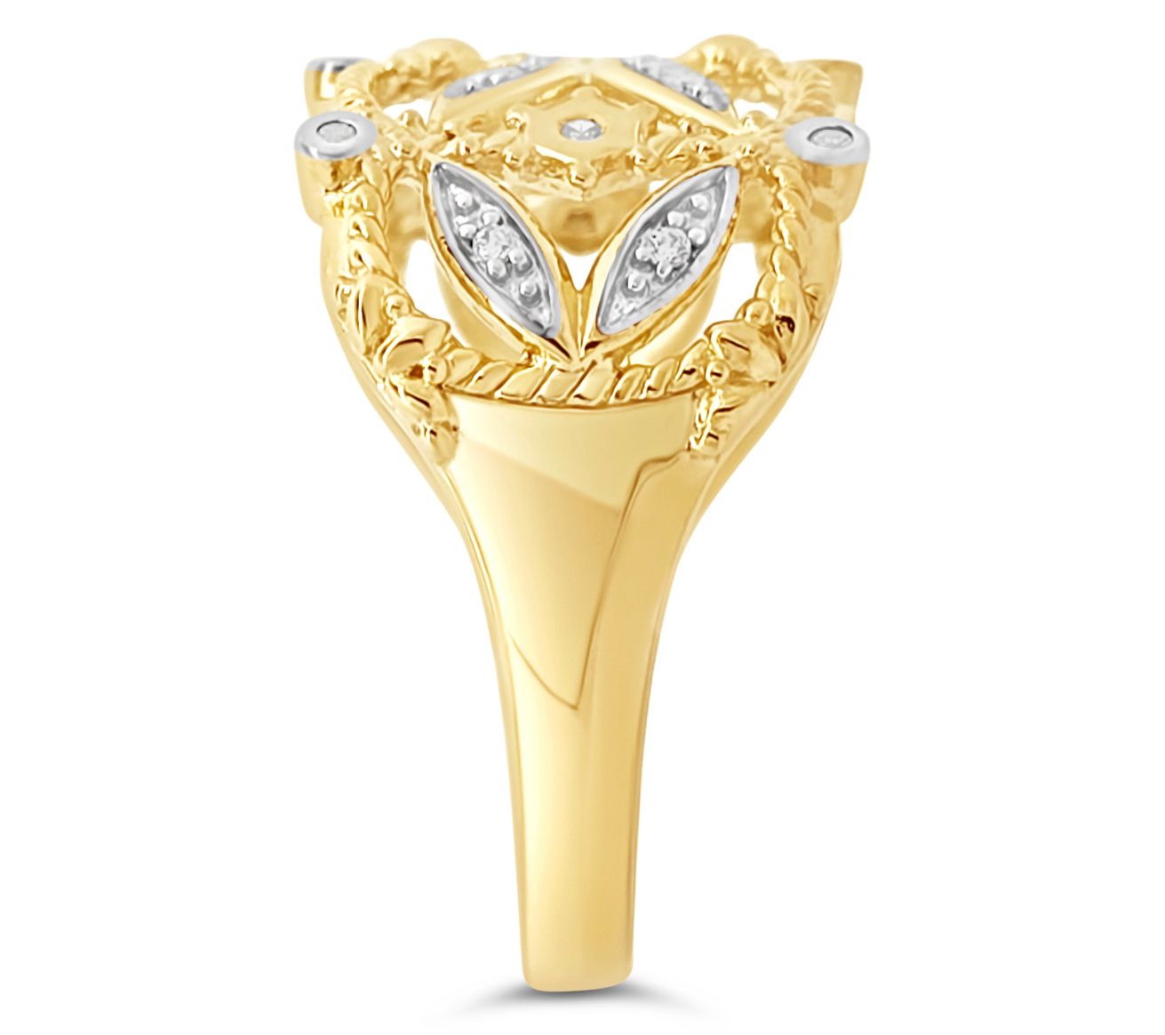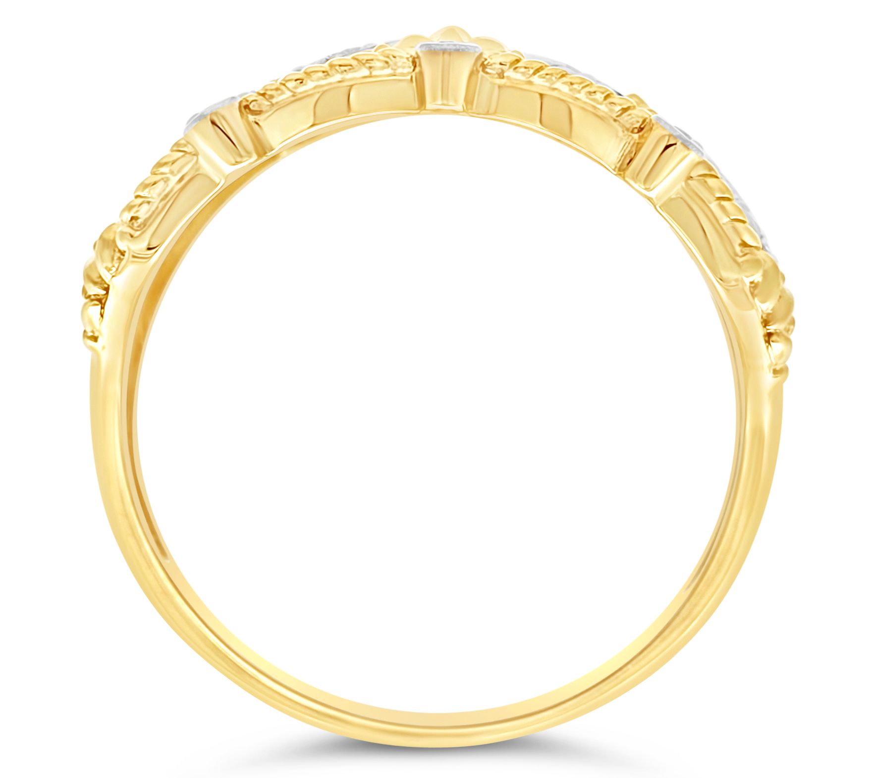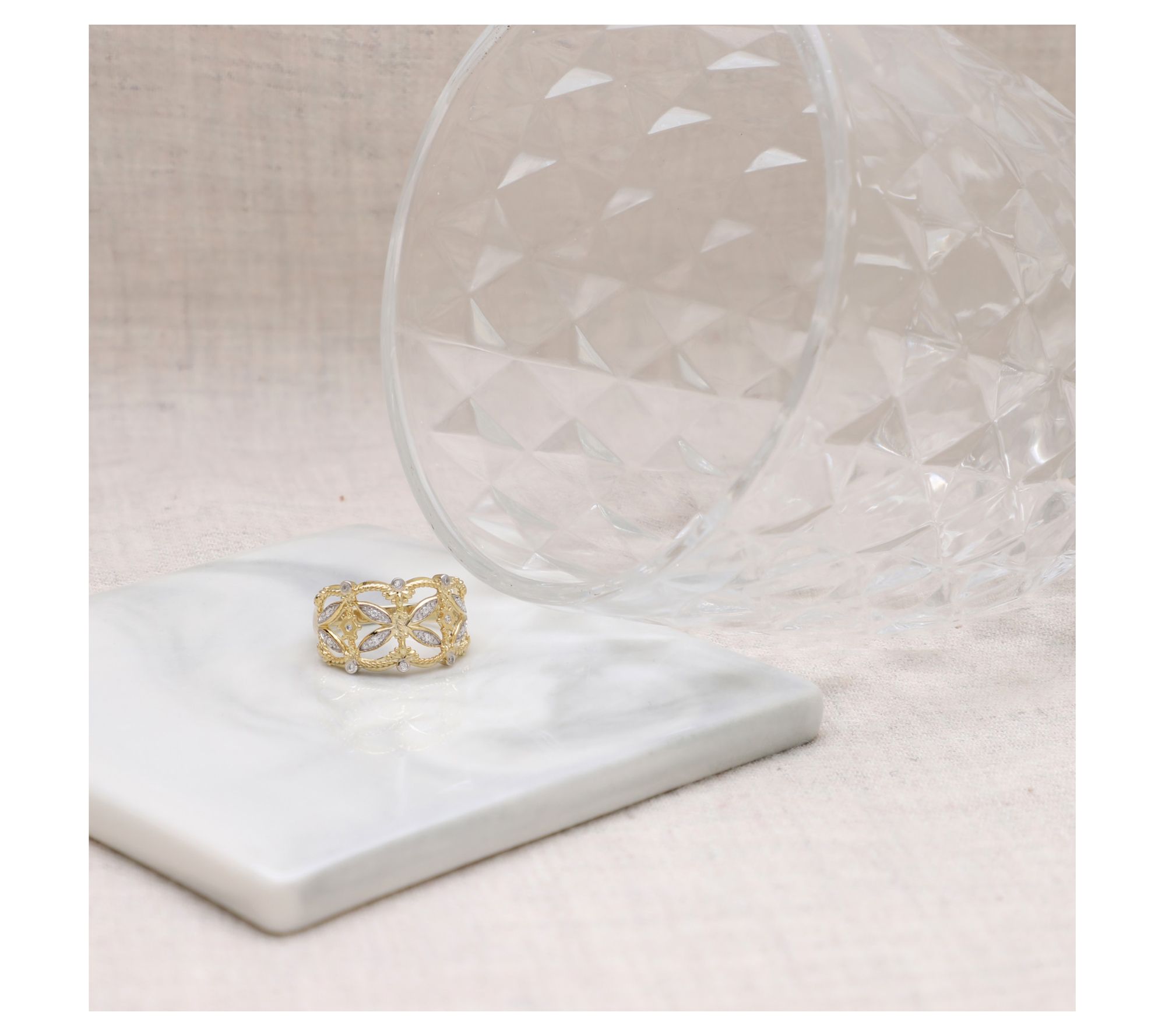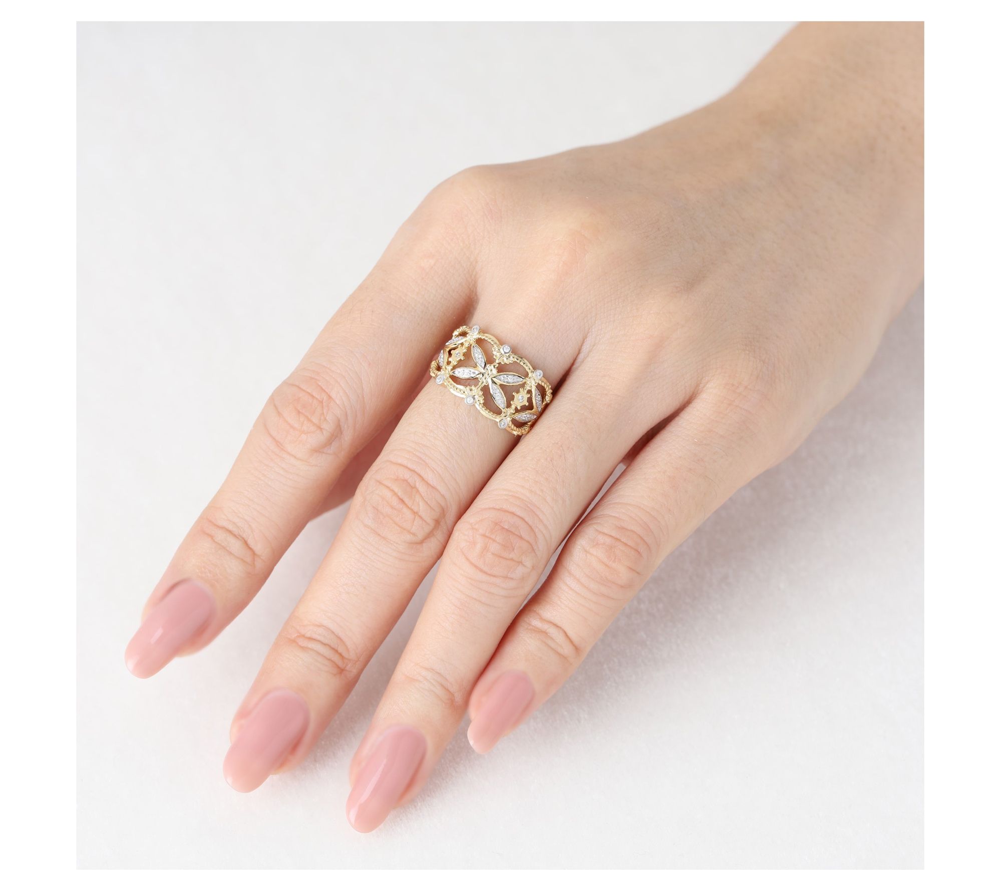 Open band design; pave-set and bezel-set Diamonique simulated diamond accents; fine rope edges