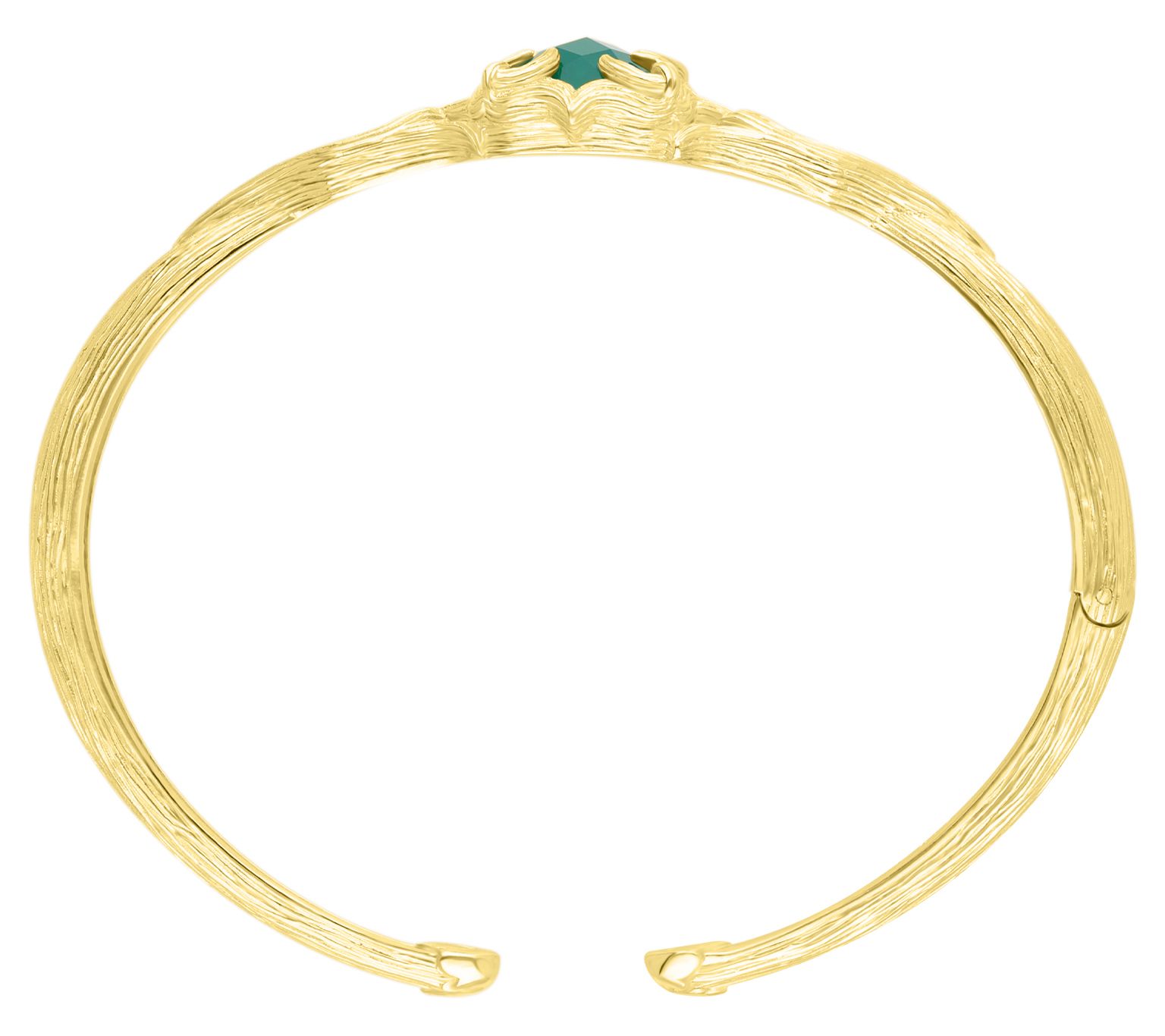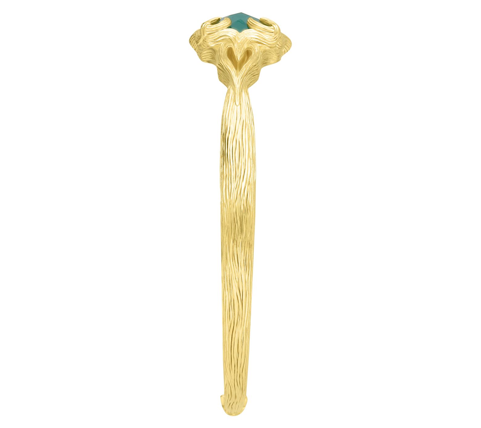A vine-textured 18K yellow gold-clad cuff bracelet with a dazzling green chalcedony gemstone at the center? Yes, please. From Ariva.