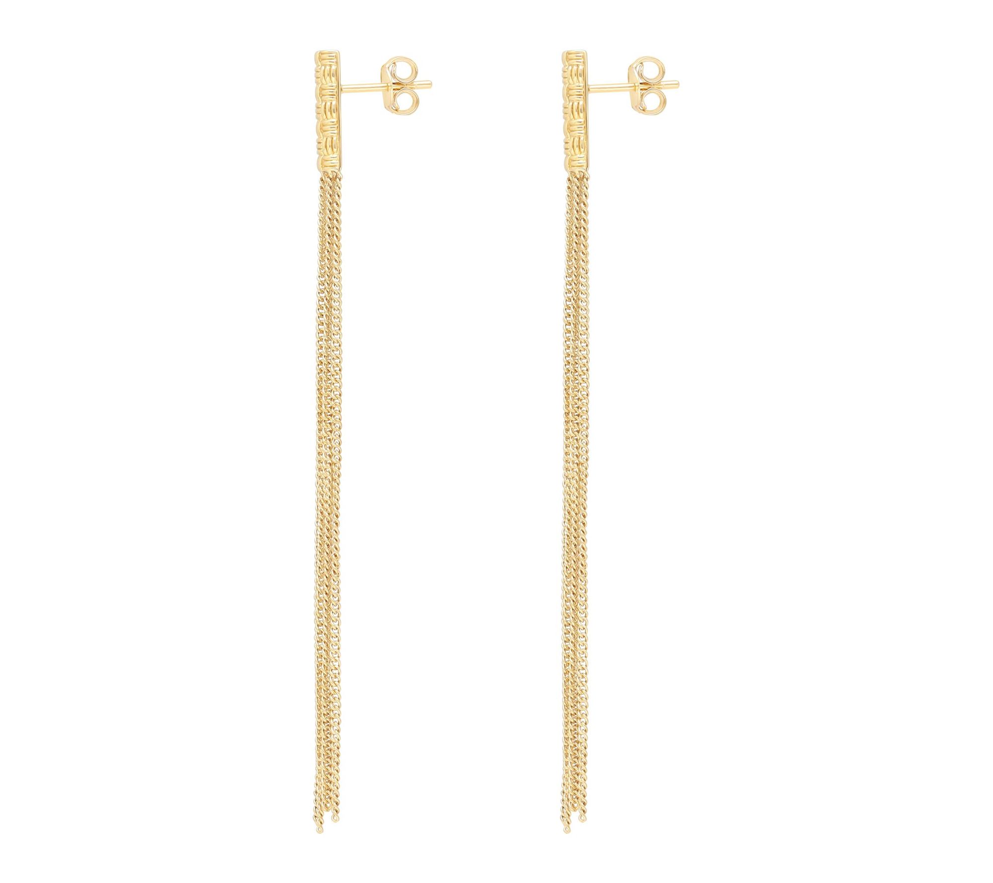 Long chain tassel earrings bring movement and shimmer to your style, catching the light as you turn heads at a dinner party or during a night out. The basket-weave top and cascading fringe deliver contemporary flair with classic elegance, creating a statement you'll love to wear. From Ariva.