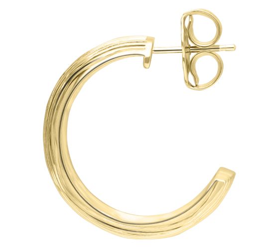 A jewelry box staple with a sophisticated twist, these 18K gold-clad sterling silver hoop earrings are finished with a gorgeous silk texture. From Ariva.