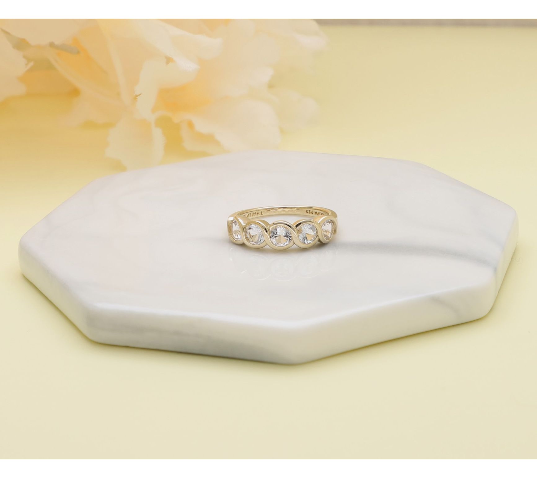 Sparkling with sophistication, this Fionna ring enhances your ensemble with the luminous shimmer of white topaz set in glowing 18K gold-clad sterling silver elegance. Whether you're setting out for a special event or want to add a touch of radiance to your everyday style, this ring beautifully complements any look. From Ariva.