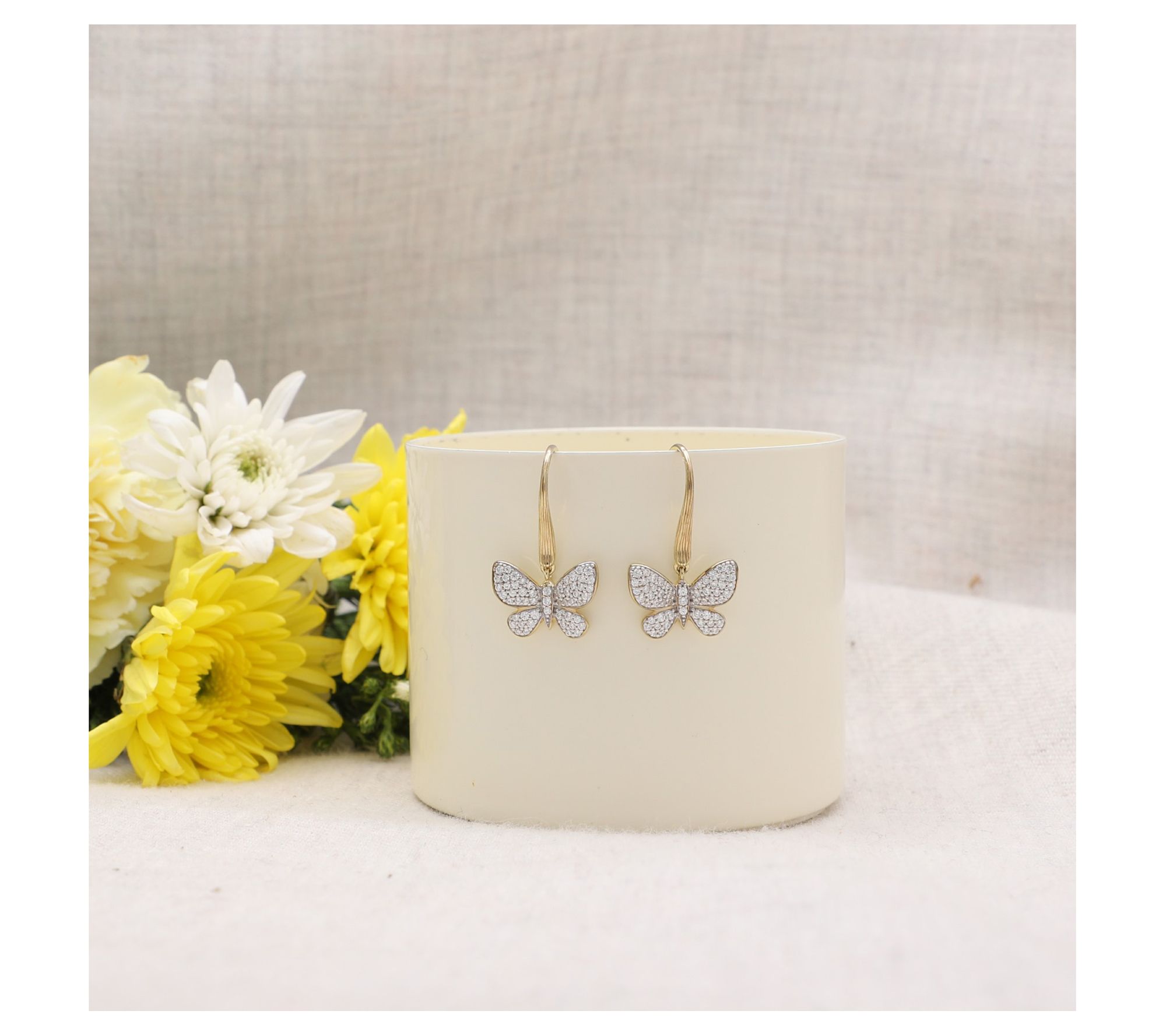 • Silk textured top; pave-set Diamonique stones in butterfly wings and body