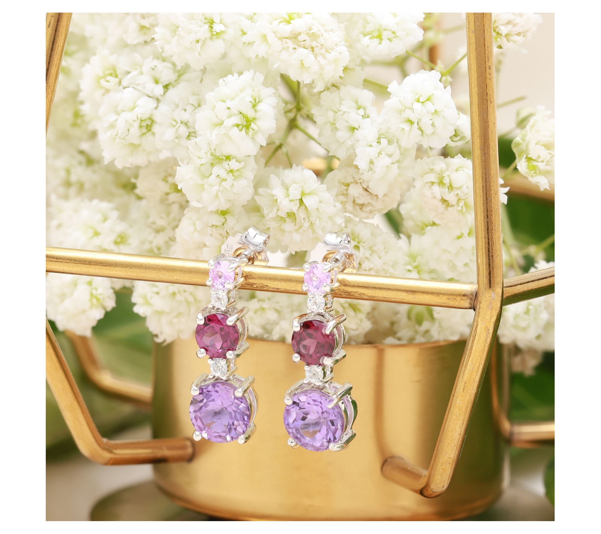 - Total gemstone weights are approximate: pink amethyst 2.30 carats; rhodolite 1.20 carats; pink sapphire 0.25 carat