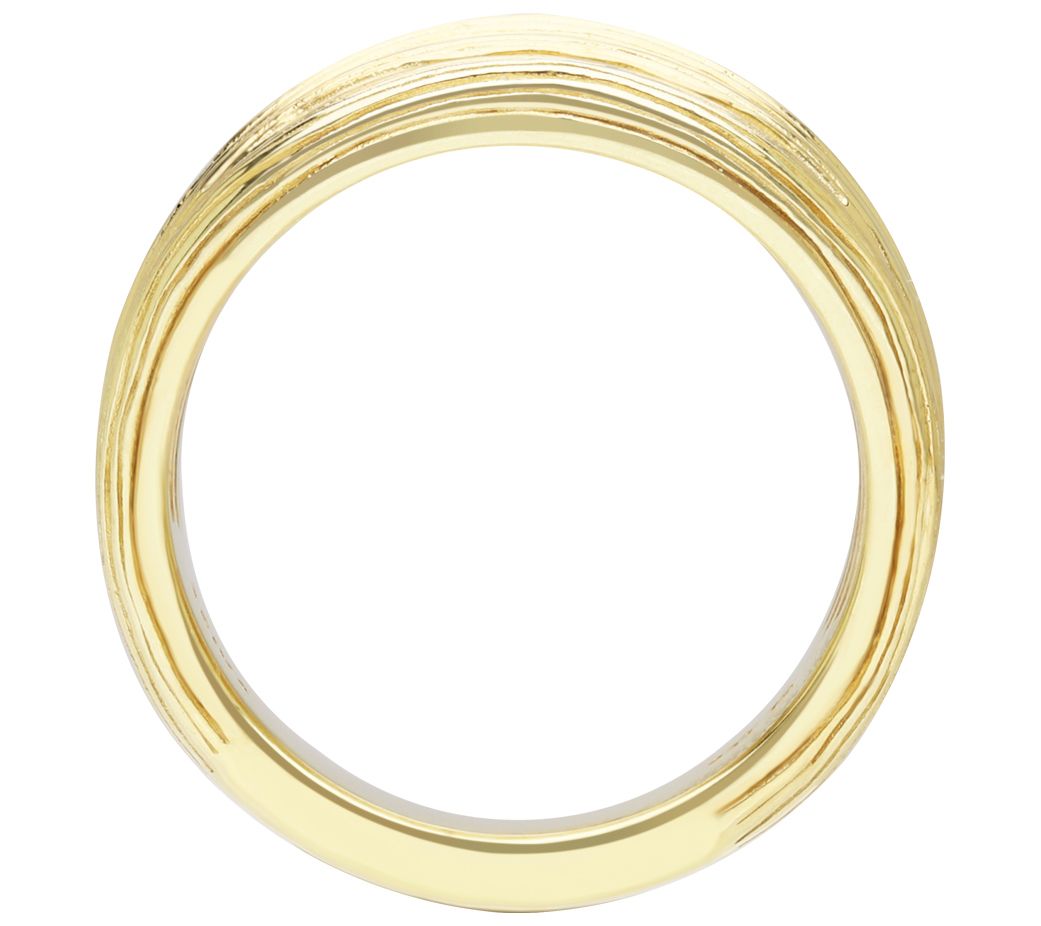 Discover the elegance of this silk open band ring, where sterling silver meets the warmth of 18K yellow gold cladding. This wide band ring features five open rows of silk-textured bands that converge gracefully at the sides, complemented by a textured shank for a touch of sophistication. From Ariva.