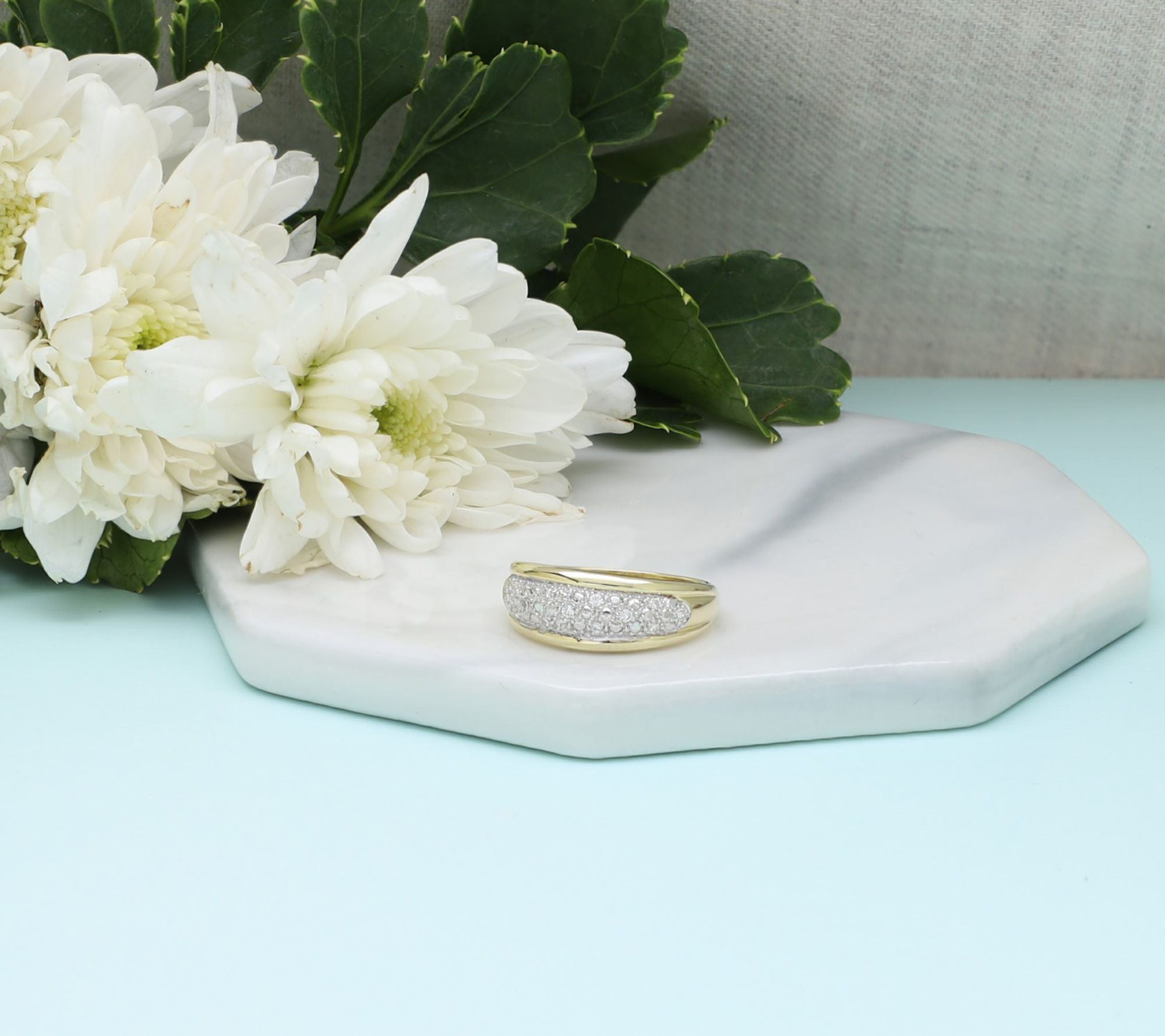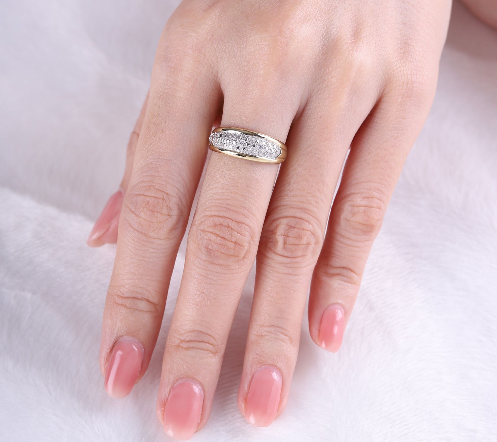 Pave-set round Diamonique simulated diamonds; polished sides and shank