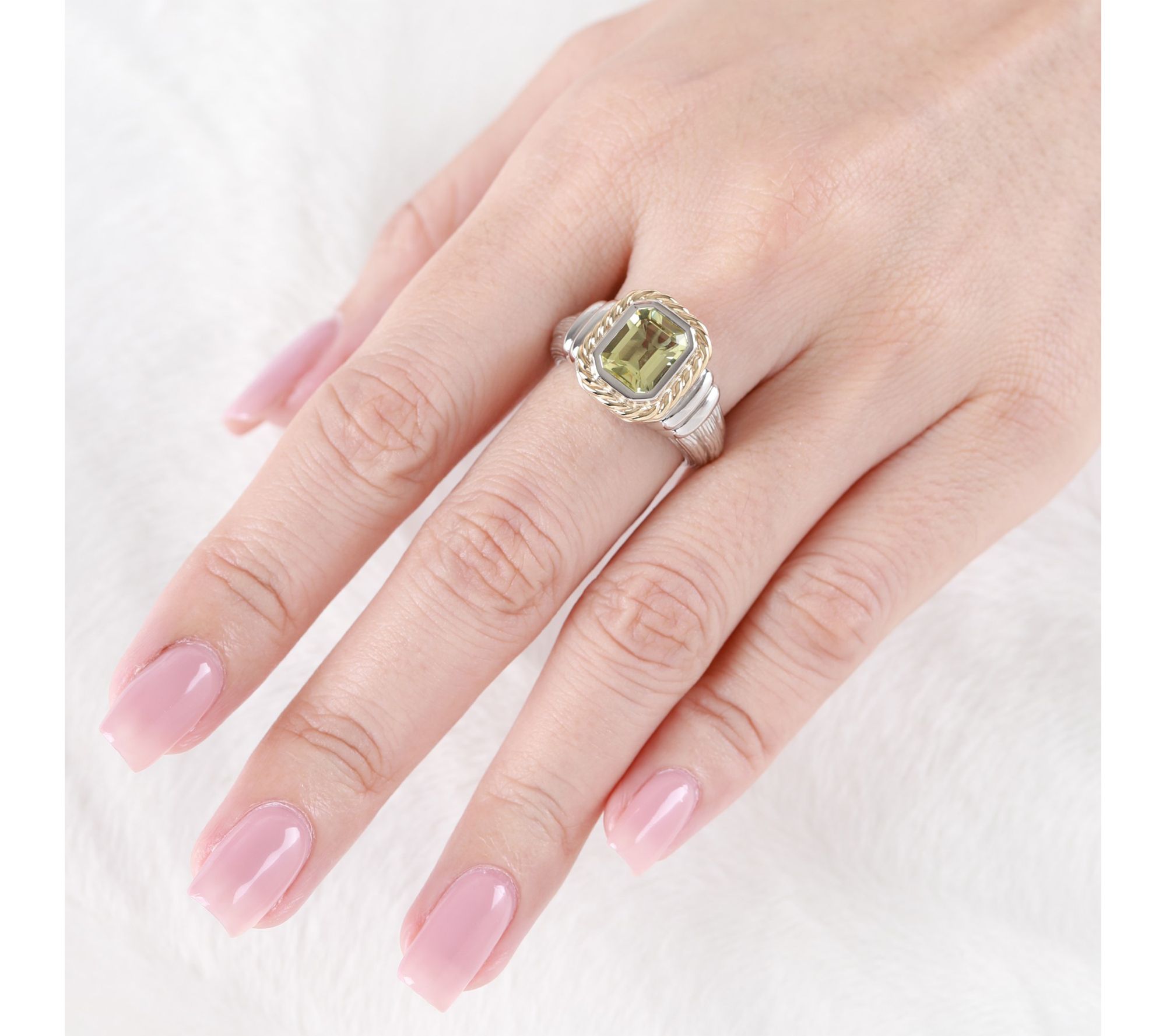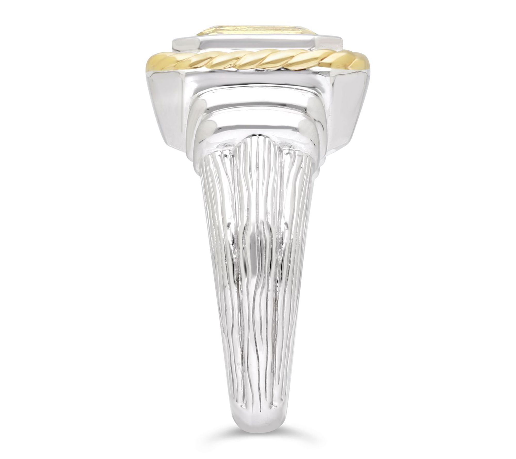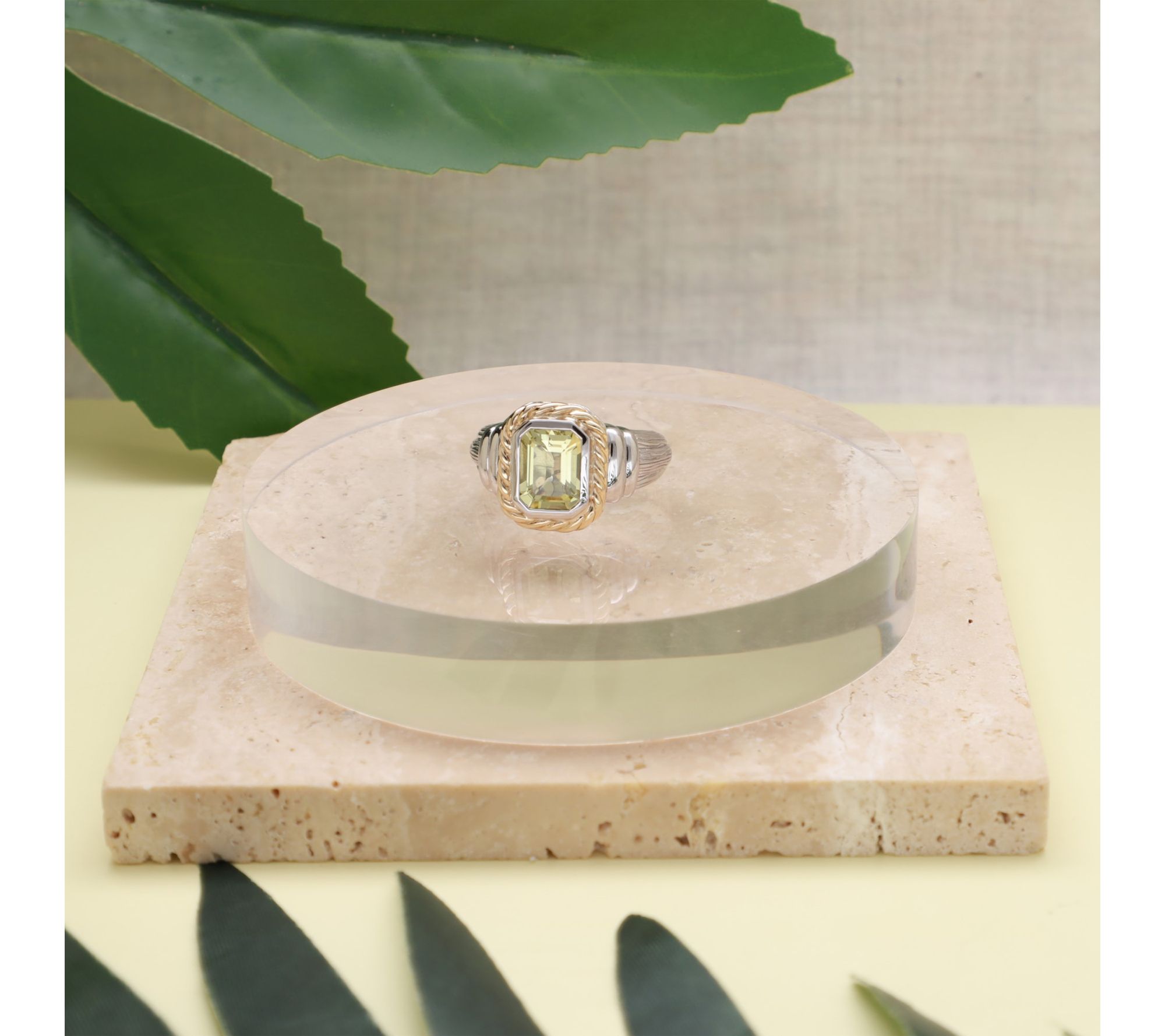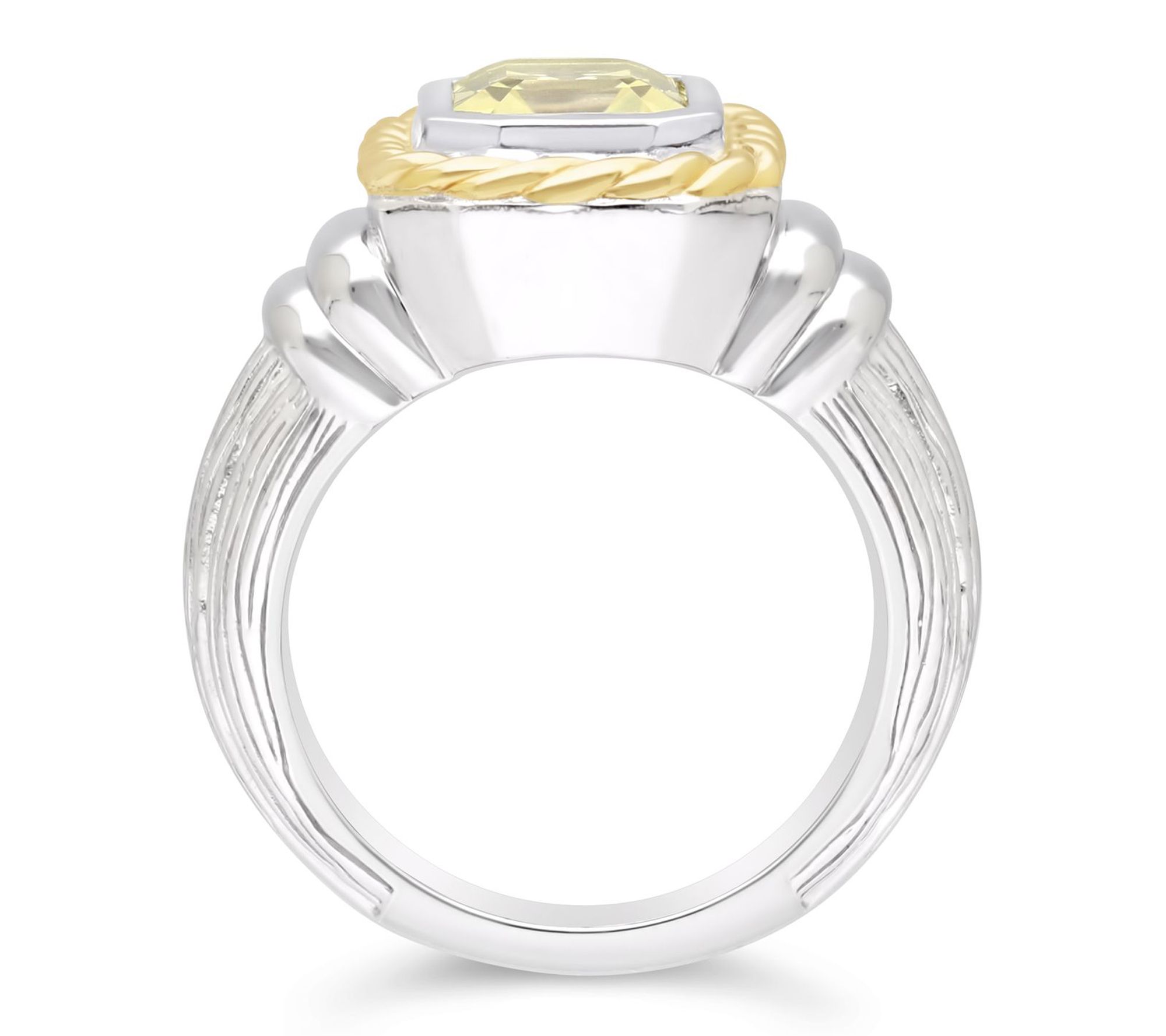 Dazzling with fresh citrusy color, this sterling silver and 18K gold limon quartz ring adds a lively touch to any look. Whether you're headed to a sunny brunch or dressing up for an evening out, the vibrant gemstone sparkles with every gesture, creating an uplifting vibe that's sure to draw compliments. From Ariva.