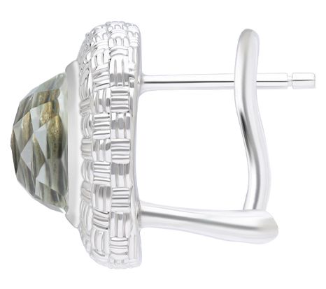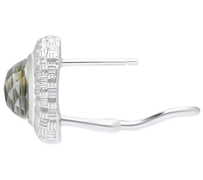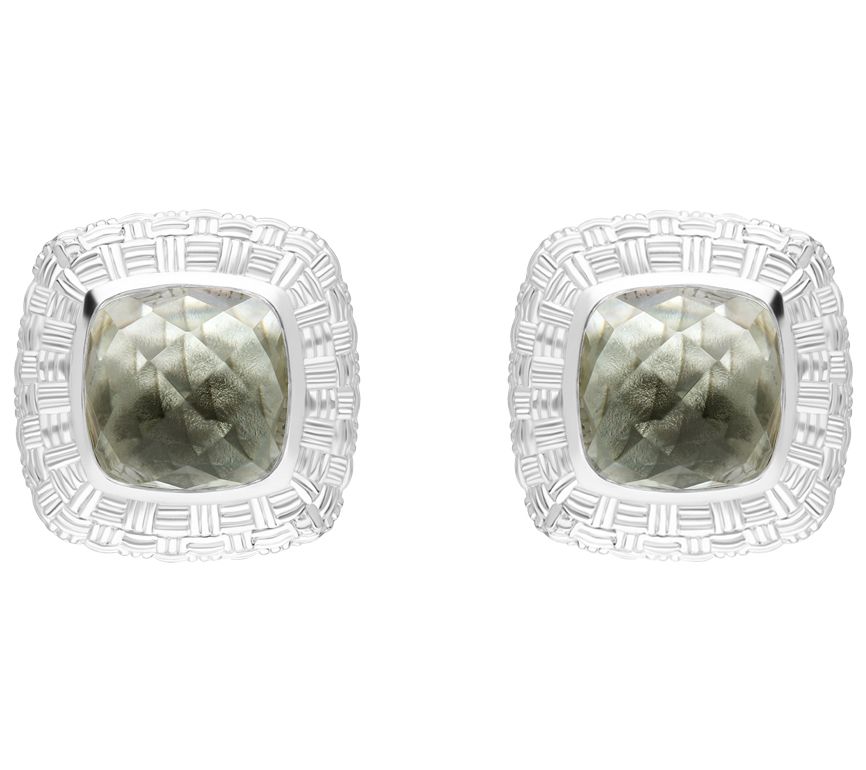 • Basket-weave stud earrings with bezel-set mint green quartz in the center