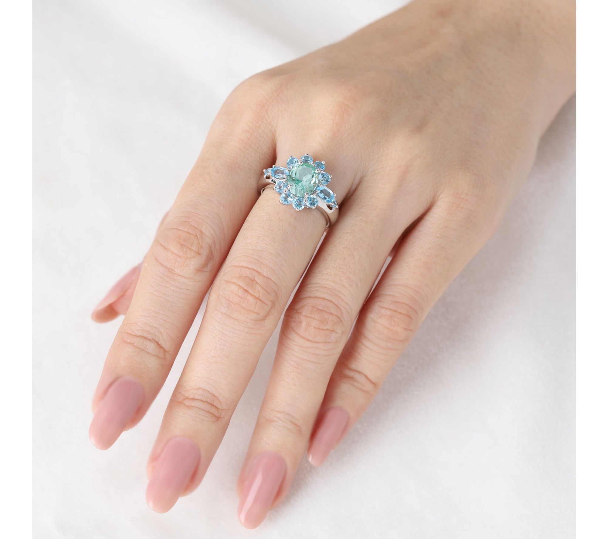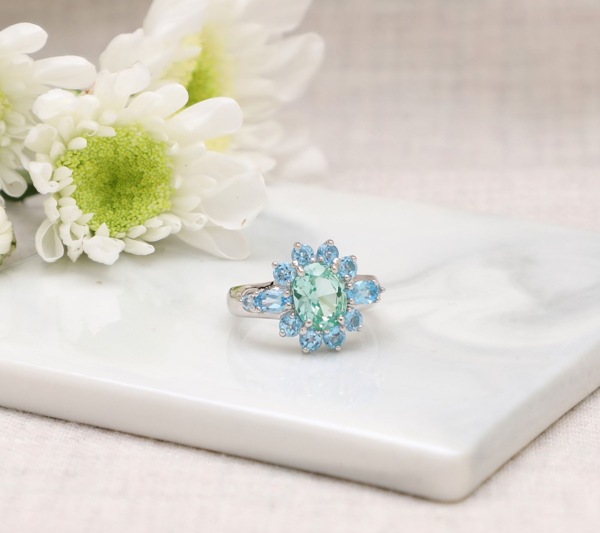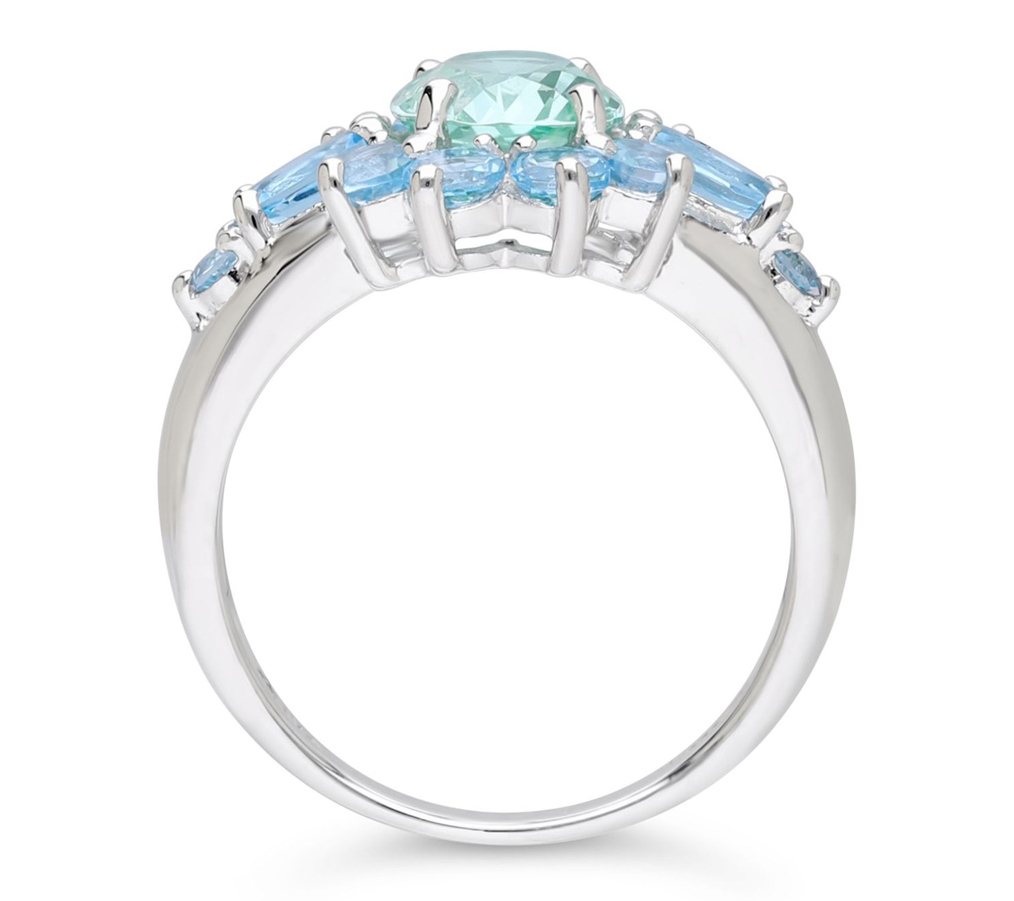 Cool blue topaz paired with vibrant green spinel brings a lively pop of color to this Alyssa ring, making it a charming choice for adding flair to lunch dates or anytime outfits. Its sterling silver setting highlights each gemstone, creating a look that easily moves from casual brunches to evening gatherings. From Ariva.