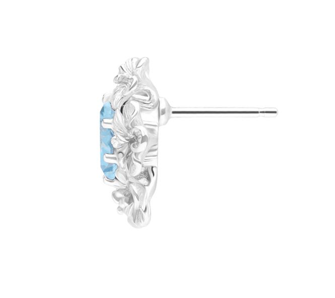 • Textured flower earrings with round-cut, faceted blue topaz stones