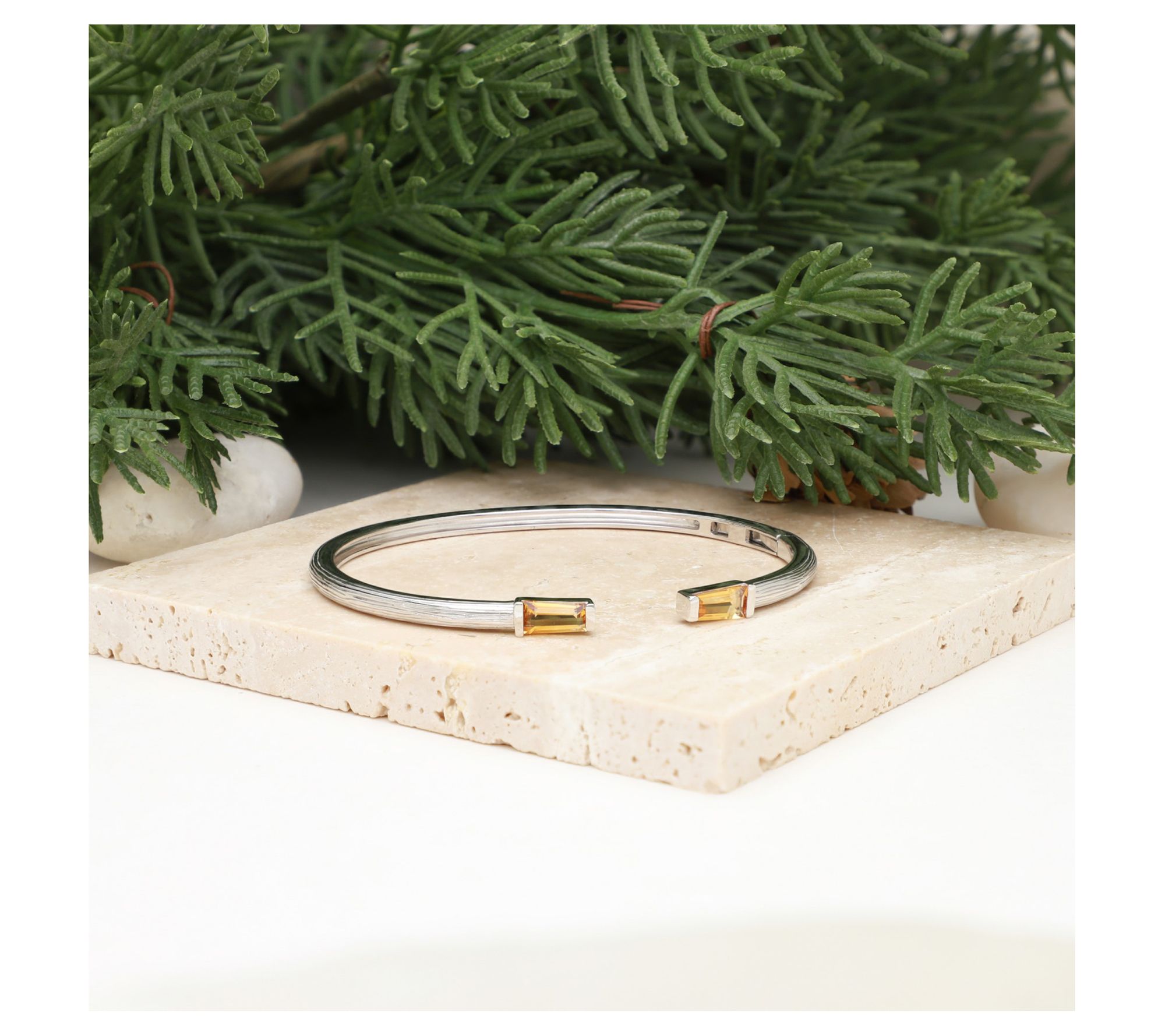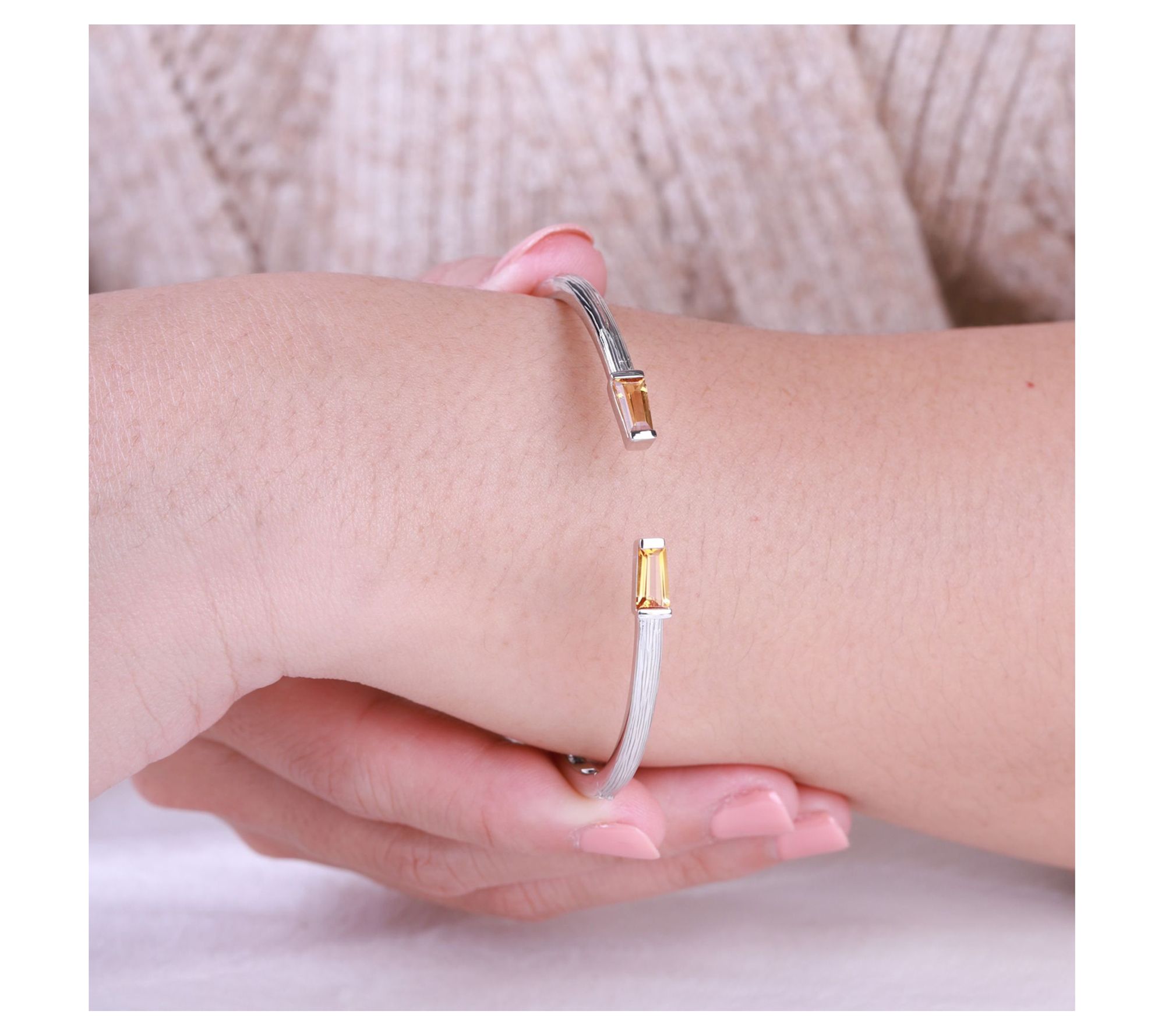 Indulge in the sparkling beauty of this eye-catching cuff decorated with bright citrine gems that lend a little magic to each gesture. From Ariva.