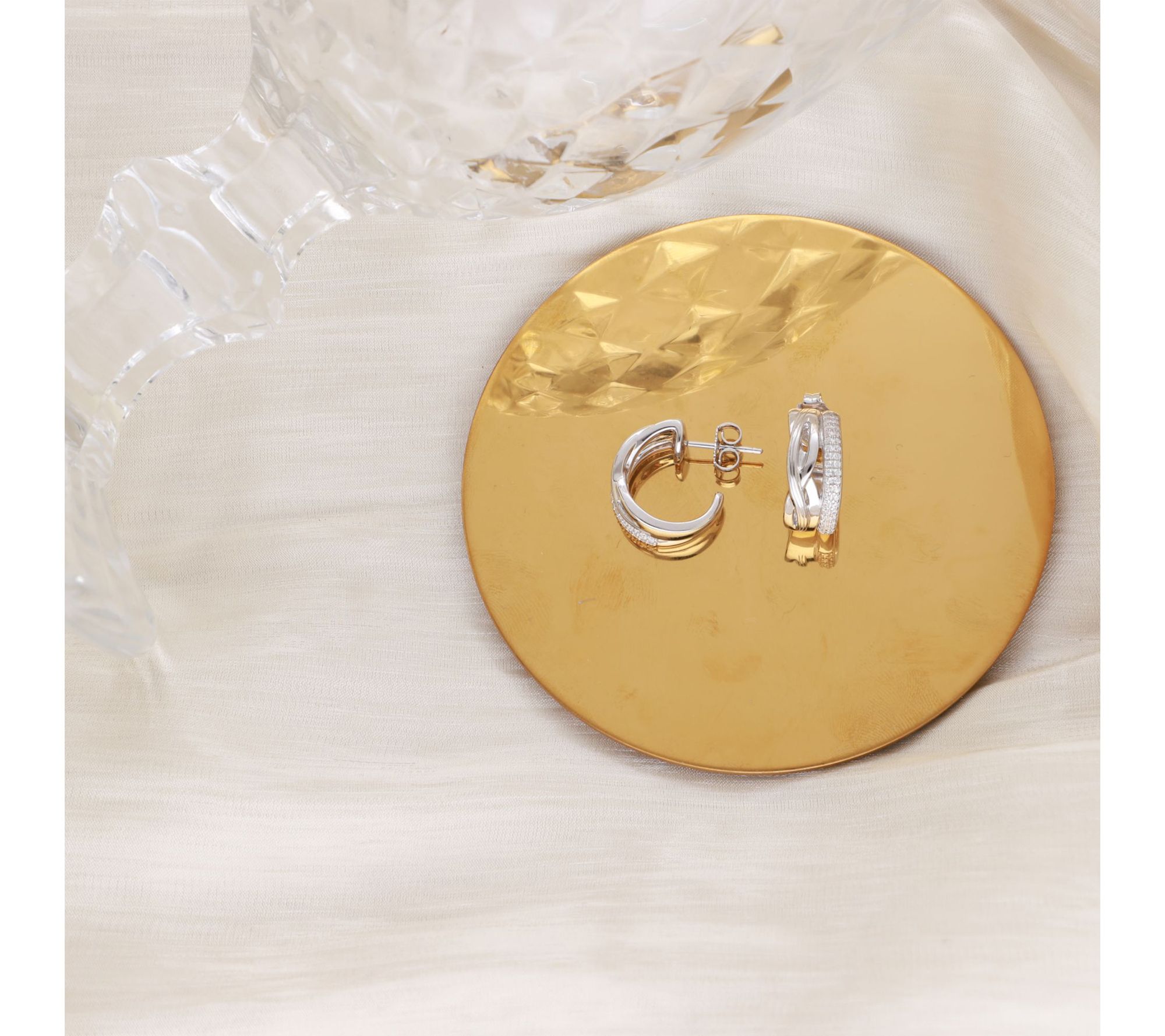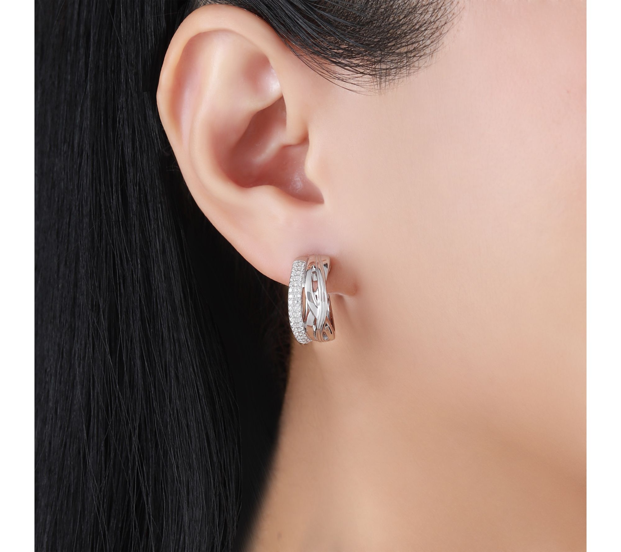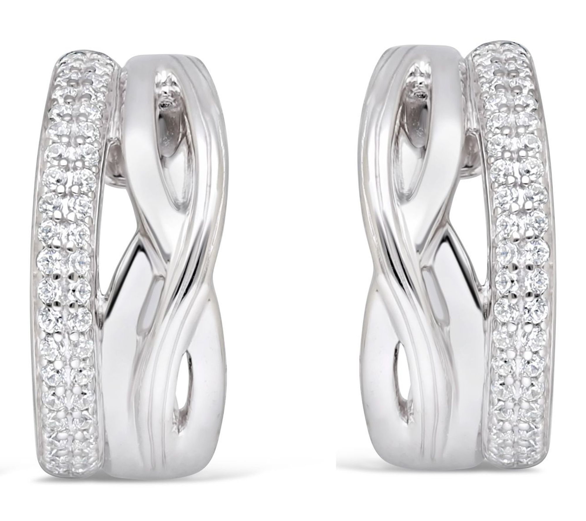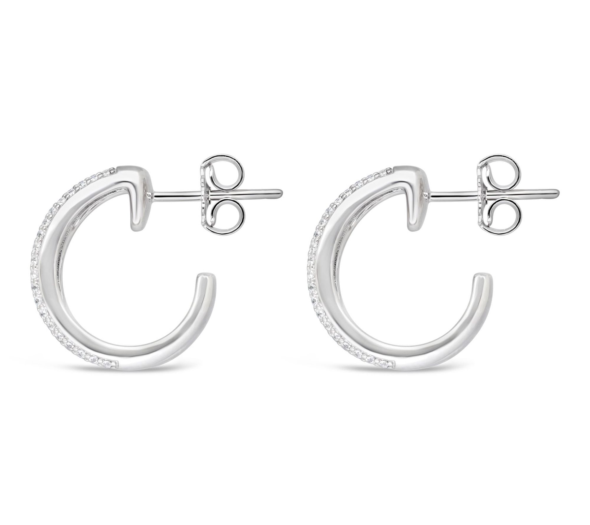 Add a little radiance to every outfit with these hoop earrings, featuring pave-set Diamonique simulated diamonds along their edges for a luxurious sparkle. Crafted from sterling silver, their classic silhouette makes them suitable for everything from brunch with friends to an elegant evening out. From Ariva.