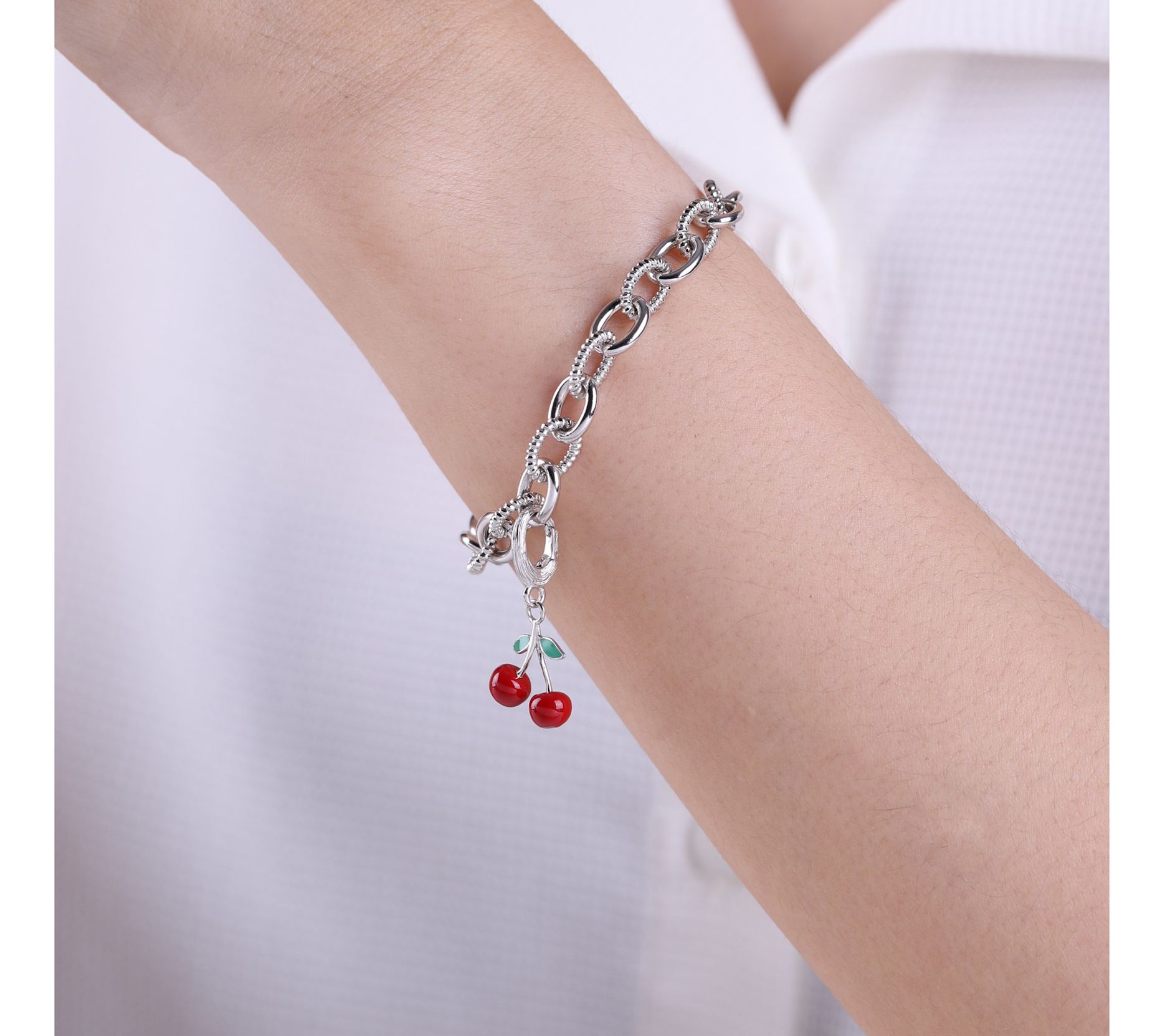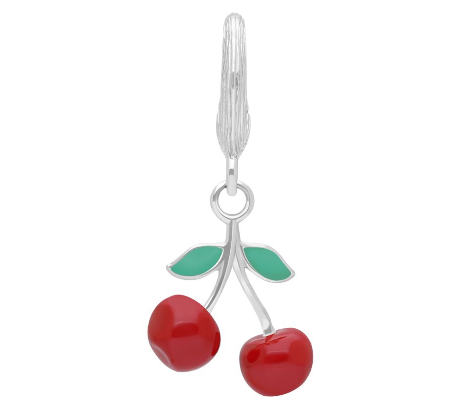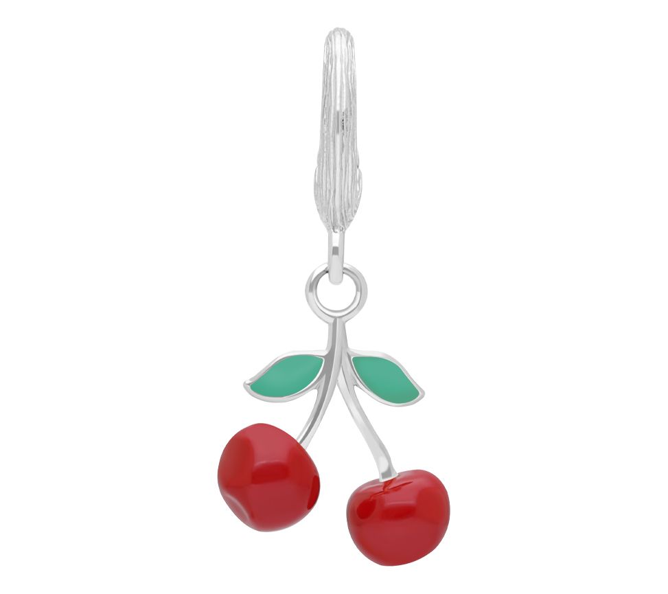 Add a pop of playfulness to your bracelet with the Ariva sterling silver enamel cherry charm. Featuring vibrant enamel leaves and cherries, this three-dimensional piece adds a delightful touch to any look. The silk-textured top ensures a secure fit. From Ariva.