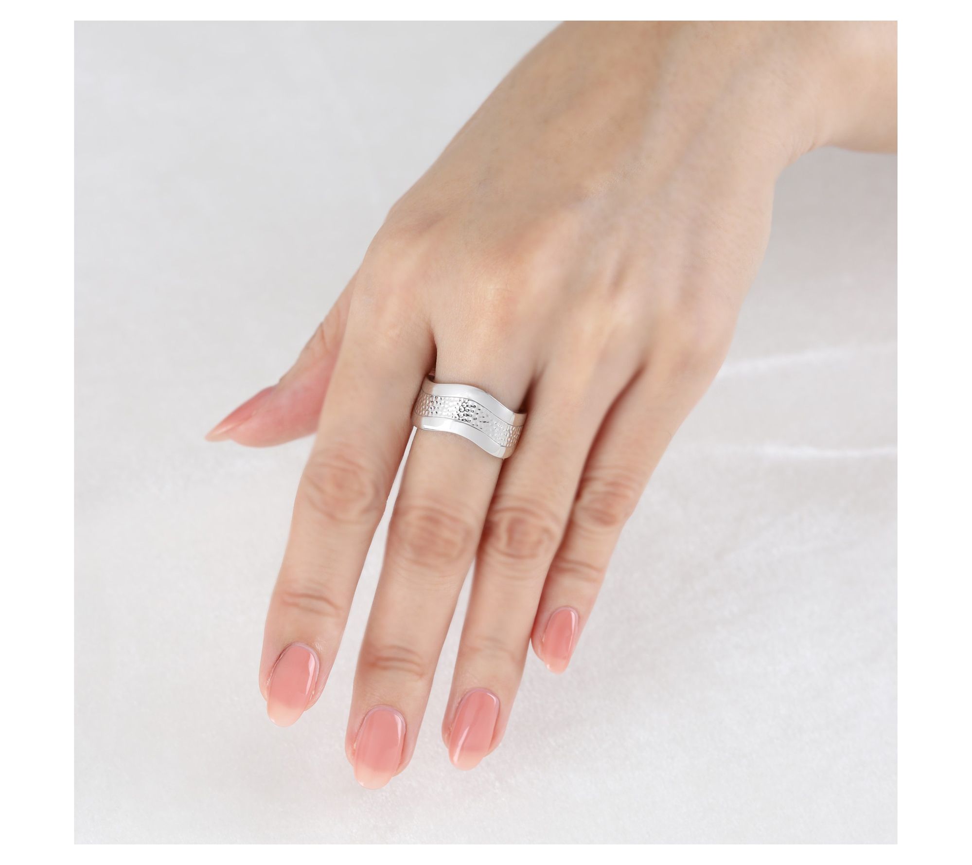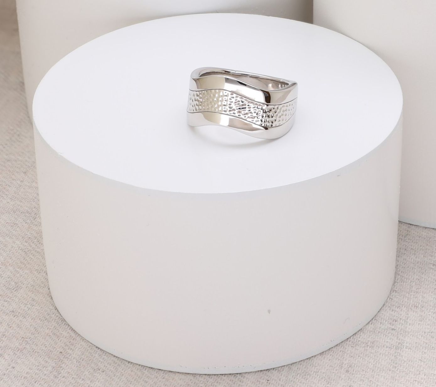 A gentle shimmer catches the light as you reach for your coffee or scroll through messages, thanks to this beautifully hammered band with wave-inspired details. Whether layered with favorites or worn solo, its artful shine brings subtle sophistication to casual days and cozy nights alike. From Ariva.