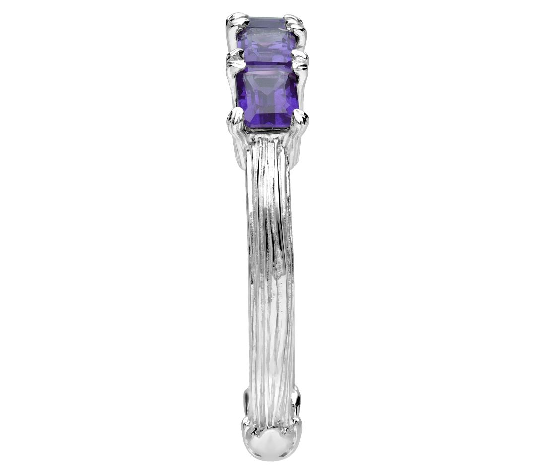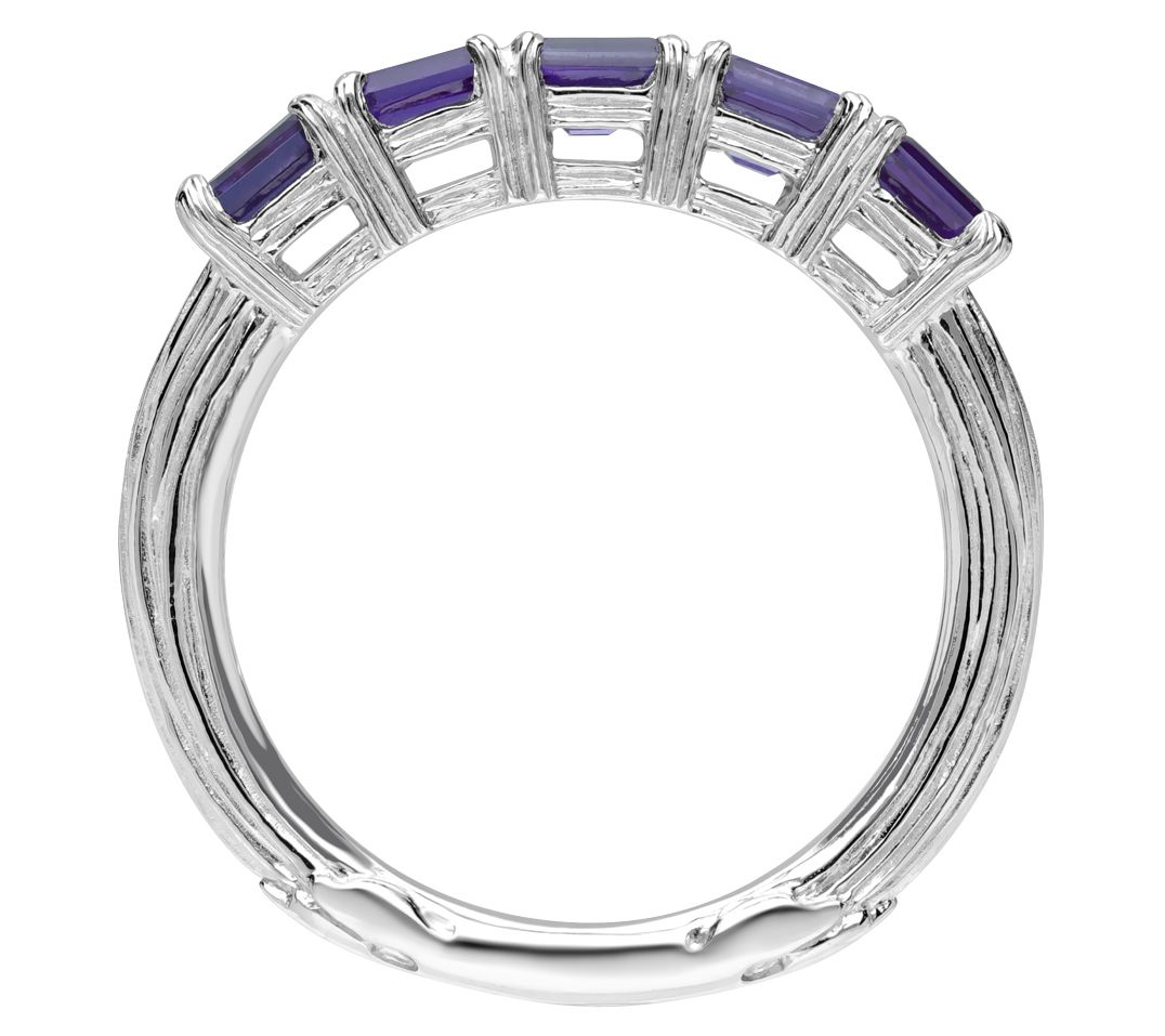 Band design; five octagon, prong-set iolite gemstones; silk textured shank