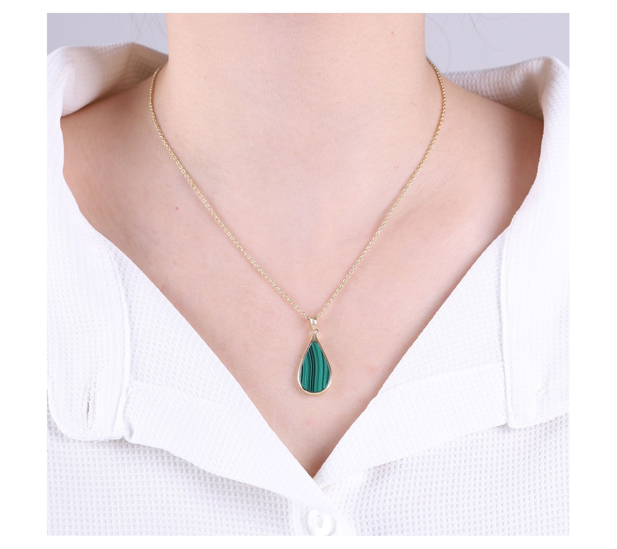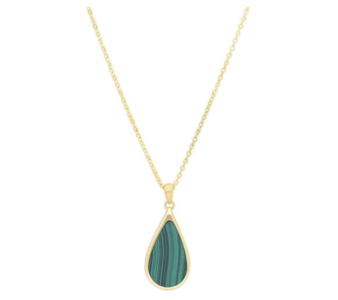 Ariva Sterling Silver Malachite Teardrop Pendant w/ Chain