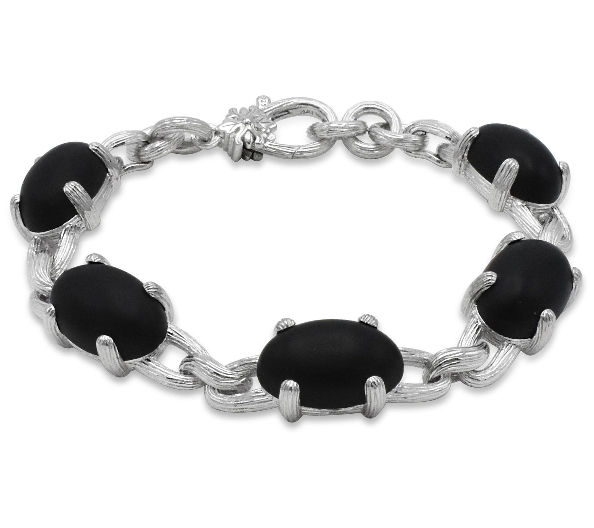 • Textured sterling silver links; oval, prong-set matte black onyx cabochon gemstones