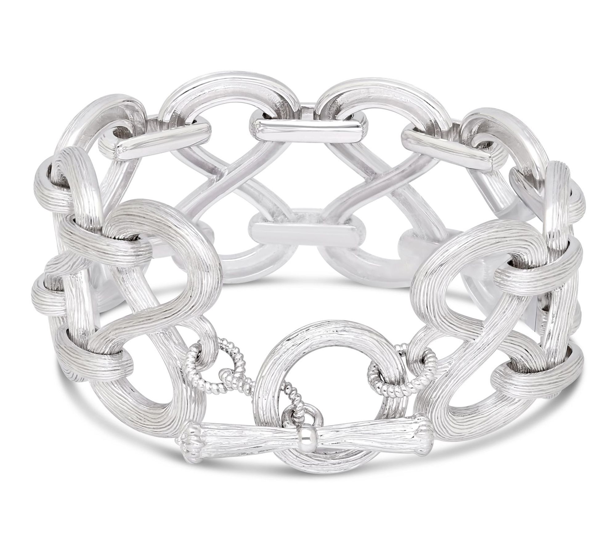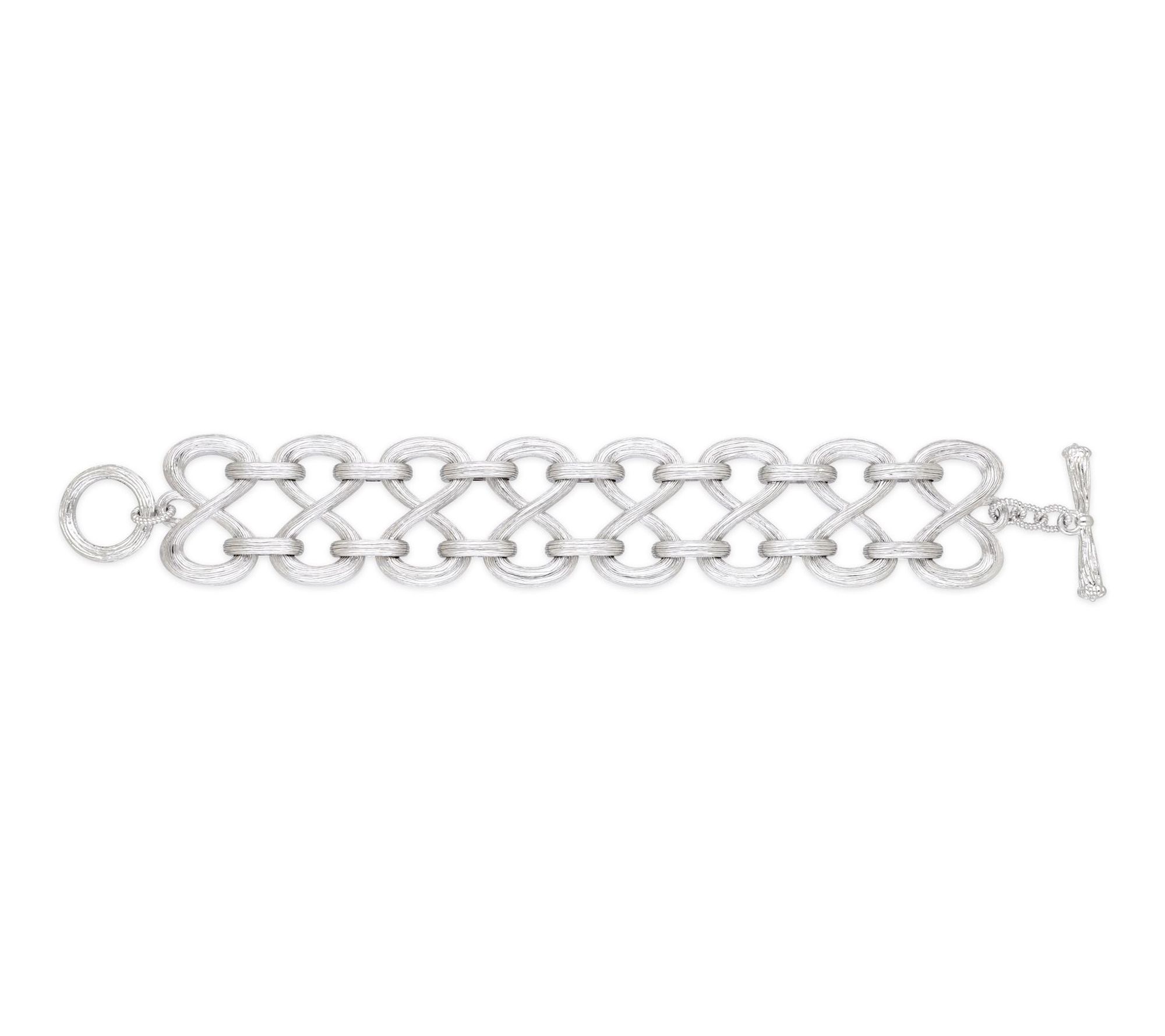 Slip this sterling silver bracelet on before heading out to brunch or layering with your favorite watch for a polished, everyday look. Silk-textured flexible open links lend a bold yet elegant touch, making it easy to pair with anything from casual denim to a sleek evening outfit. From Ariva.