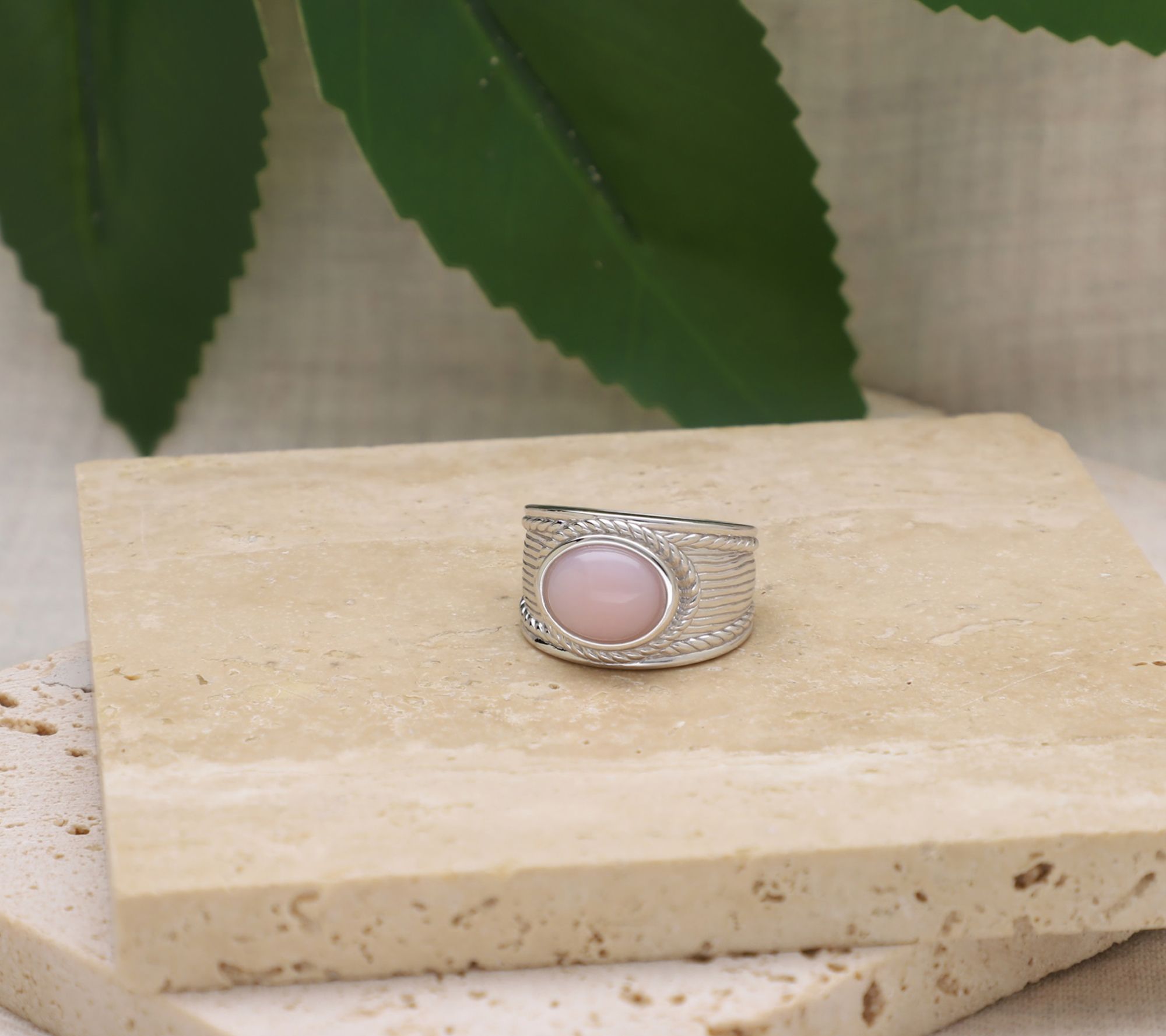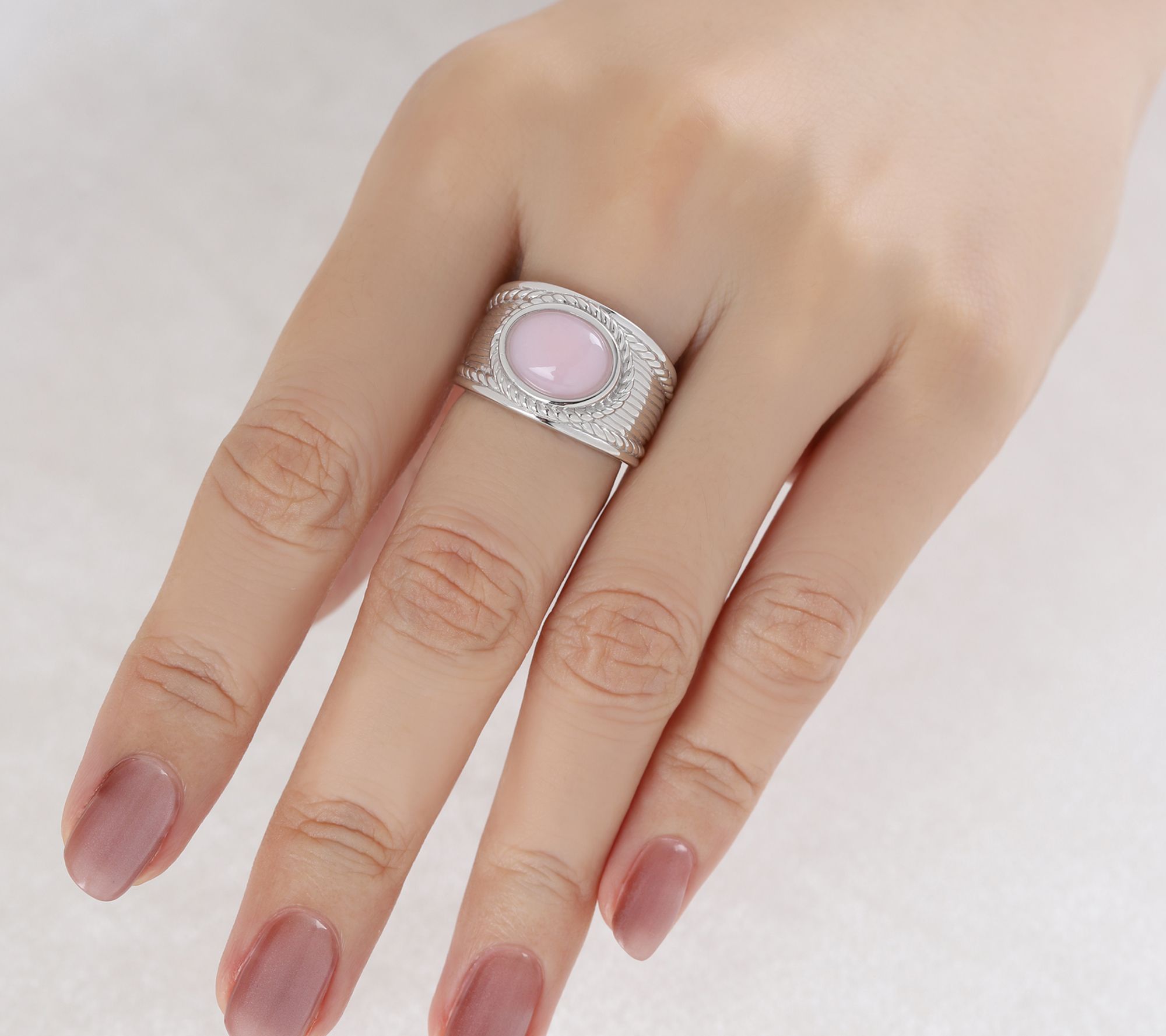 Slip on this pink opal ring and let its soft blush tones add a charming accent to your everyday style or special occasions. Crafted with sterling silver for a polished look, this piece brings a hint of romance and effortless elegance to any outfit. From Ariva.