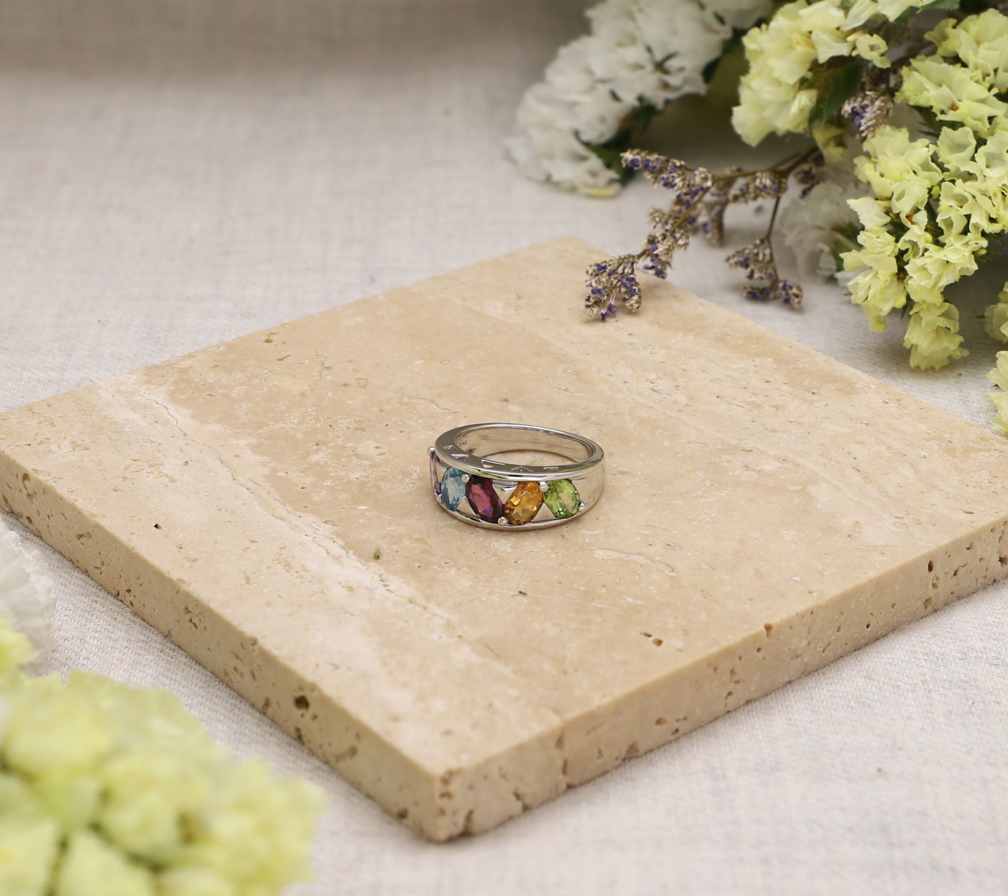 Ariva Sterling Silver Rainbow Gemstone Ring