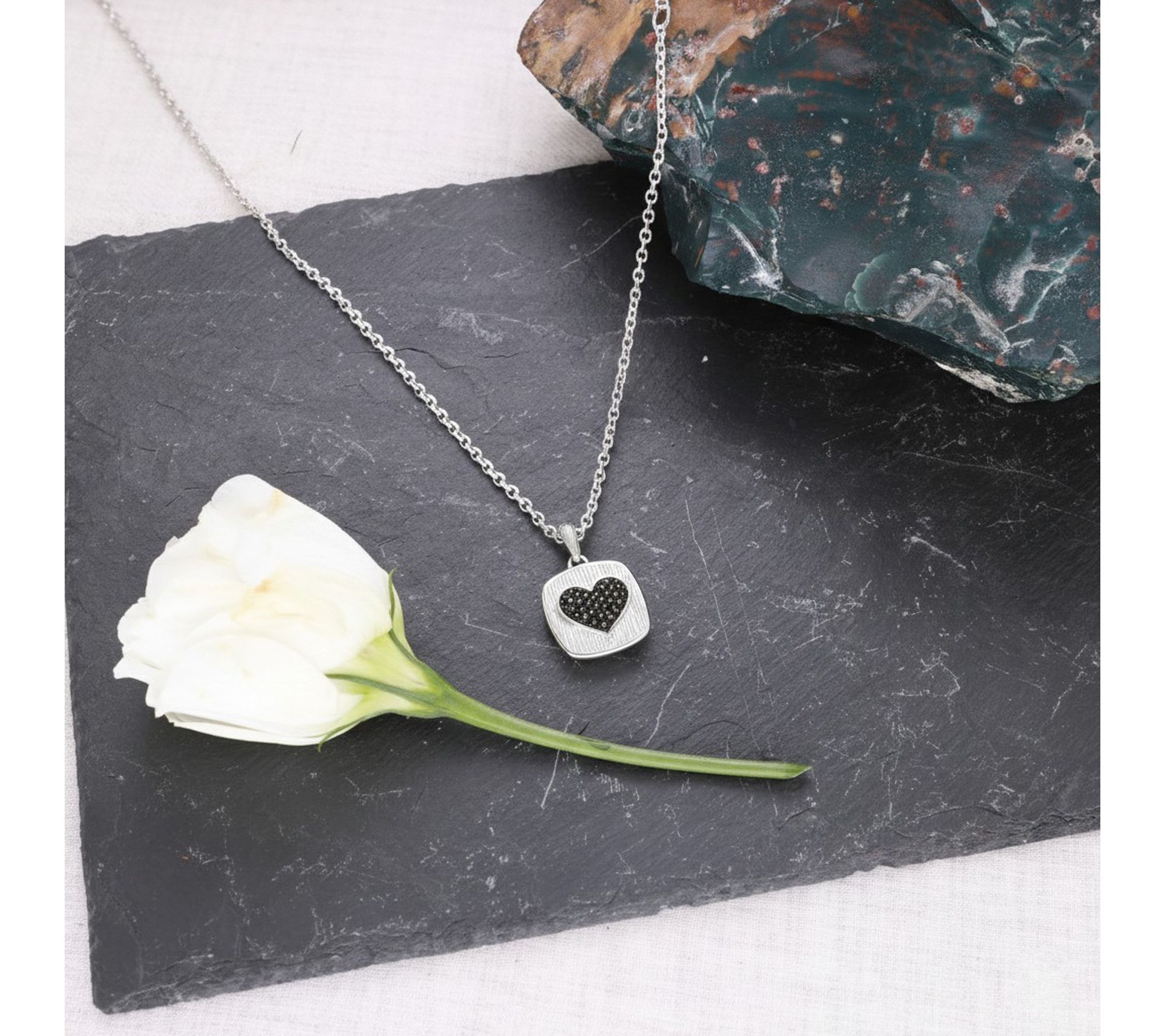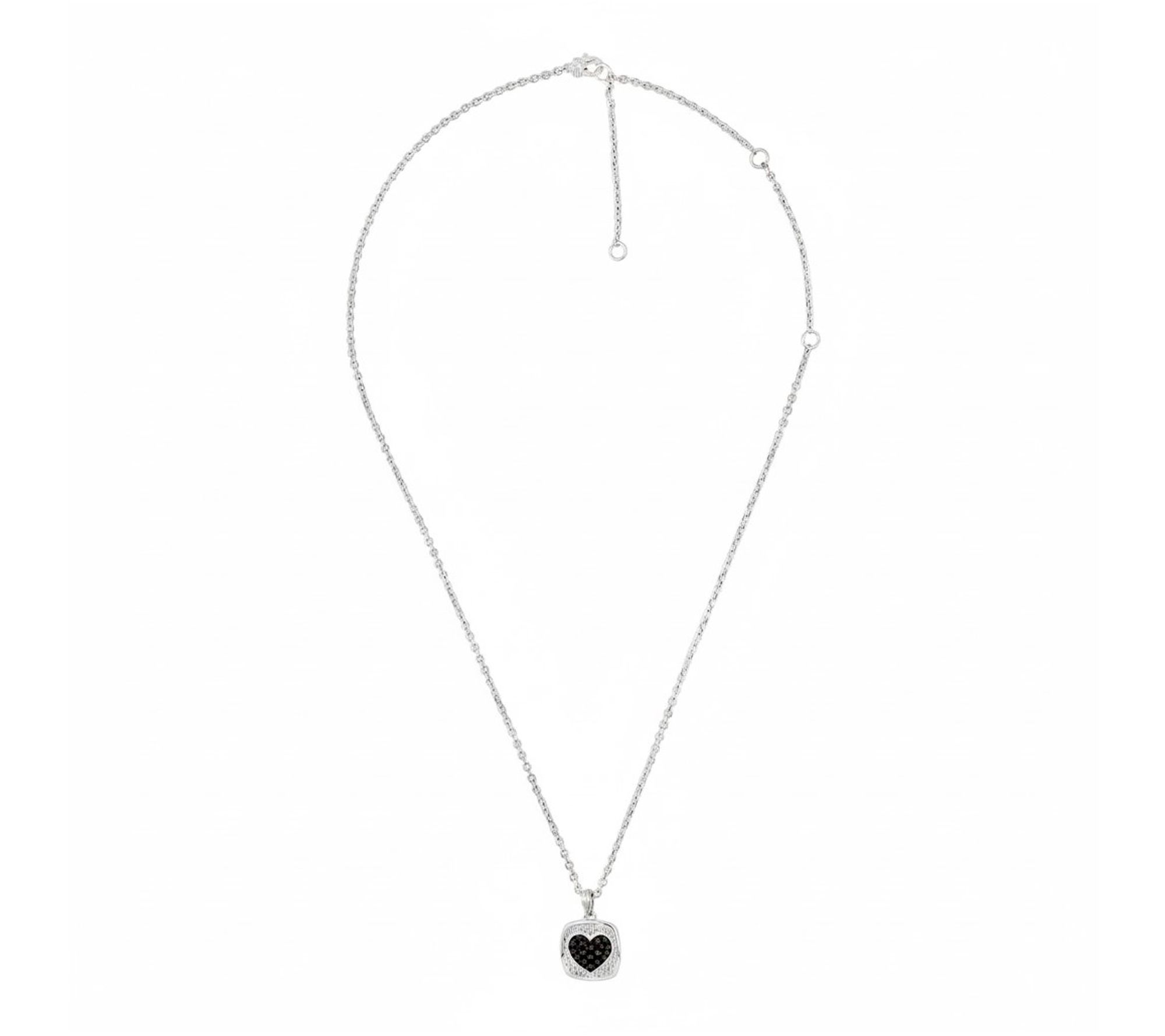 A sweet reminder to treasure every heartfelt moment, this sterling silver heart necklace sparkles with pave-set black spinel stones set against a silky textured background. Its adjustable chain makes it easy to layer or wear solo, shining as a romantic accent for everything from casual days to special evenings. From Ariva.