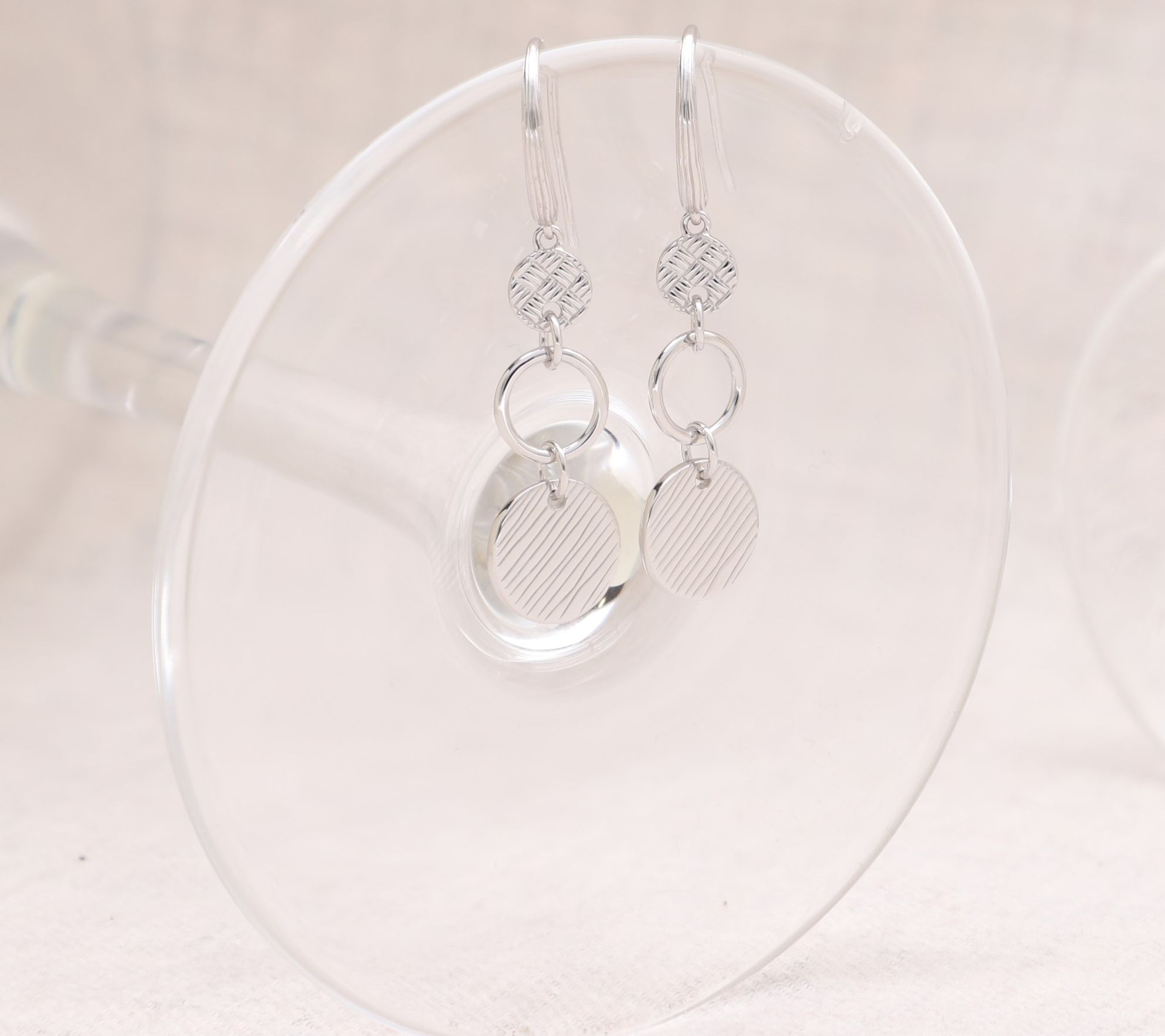• Basketweave textured circle; open high-polished circle; silk textured circles