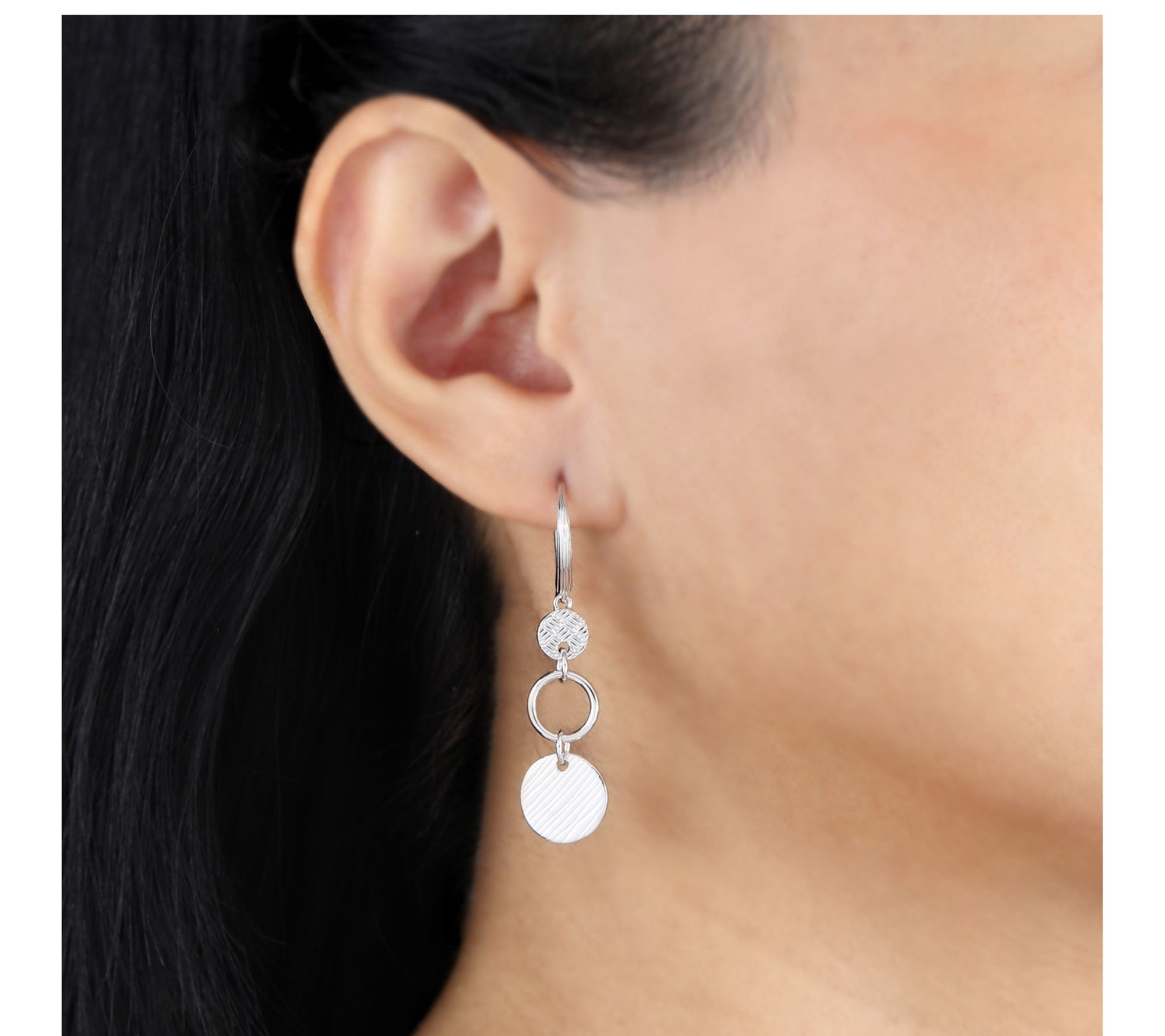 Ariva Sterling Silver Textured Circle Dangle Earrings