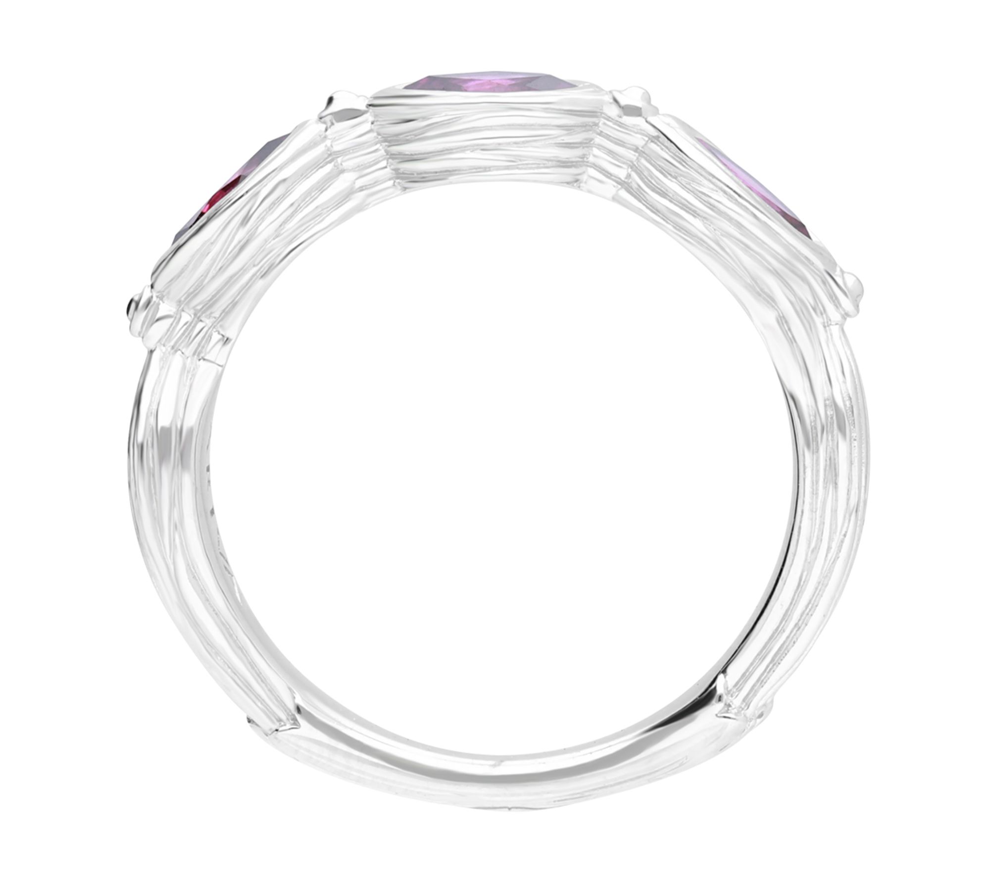 Three pops of purple adorn this sterling silver and rhodolite ring that emanates can't-miss color and standout style. From Ariva.