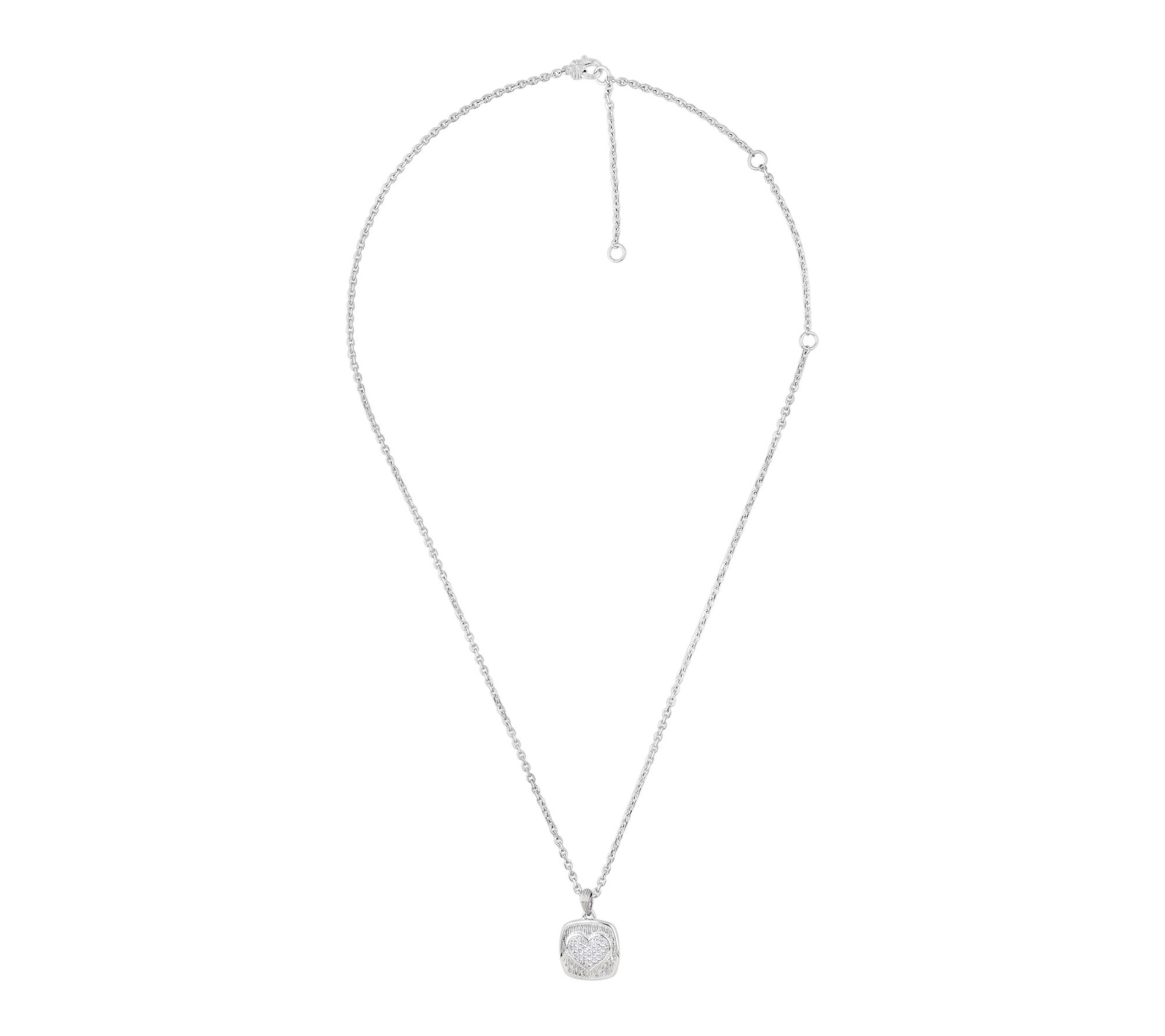 Show how much you care with this heart necklace, designed to make every moment sparkle. The polished sterling silver chain adjusts for effortless layering and beautifully highlights a detailed silk-textured pendant, centered by a pave-set white topaz heart. From Ariva.