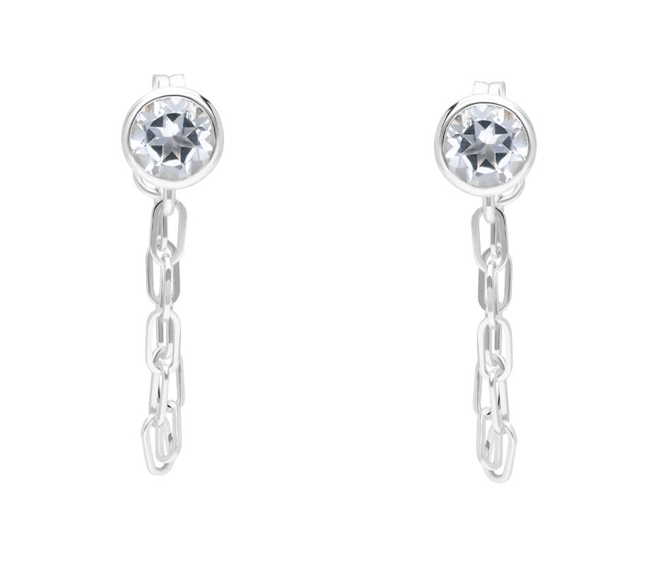 • Silk-texture earrings with round-cut, bezel-set white topaz and paperclip chains