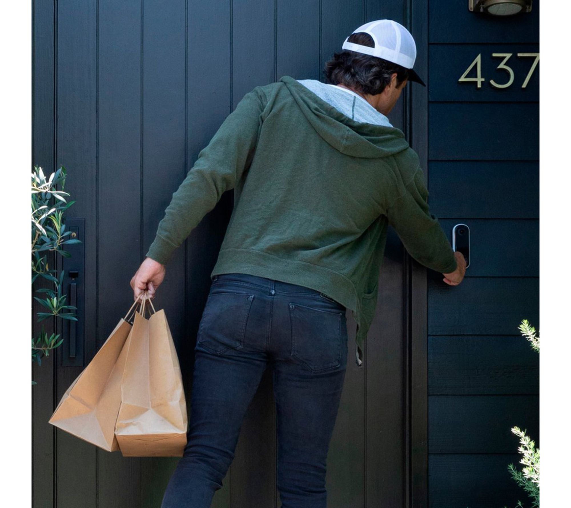 Ding dong. Answer the door the moment a visitor arrives, even when you're not home, using this Arlo video doorbell and Chime 2 set. View crisp 2K HDR video day or night right from your phone, zoom in for extra detail, and chat with guests in real time. If unwanted motion is detected, activate the built-in siren or use the app to monitor and respond from anywhere. From Arlo.