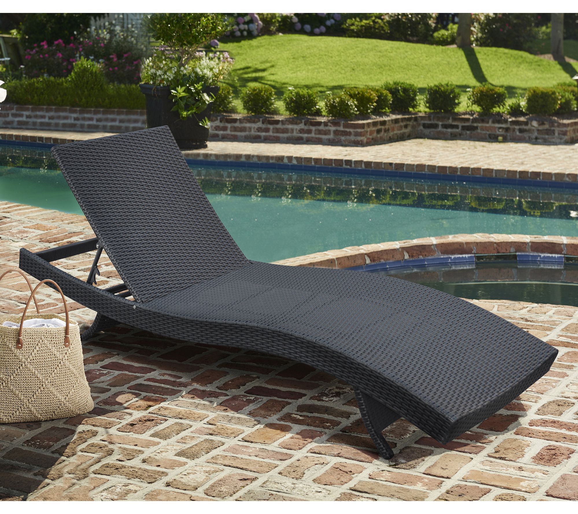 Picture yourself unwinding in the comfort of your backyard with the Armen Living Cabana adjustable chaise lounge chair. Whether soaking up the sun or enjoying some quiet reading time, its ergonomic design and adjustable backrest guarantee a relaxing experience. The durable black powder-coated aluminum frame and sleek wicker seating offer a stylish and long-lasting addition to any outdoor setting. From Armen Living.