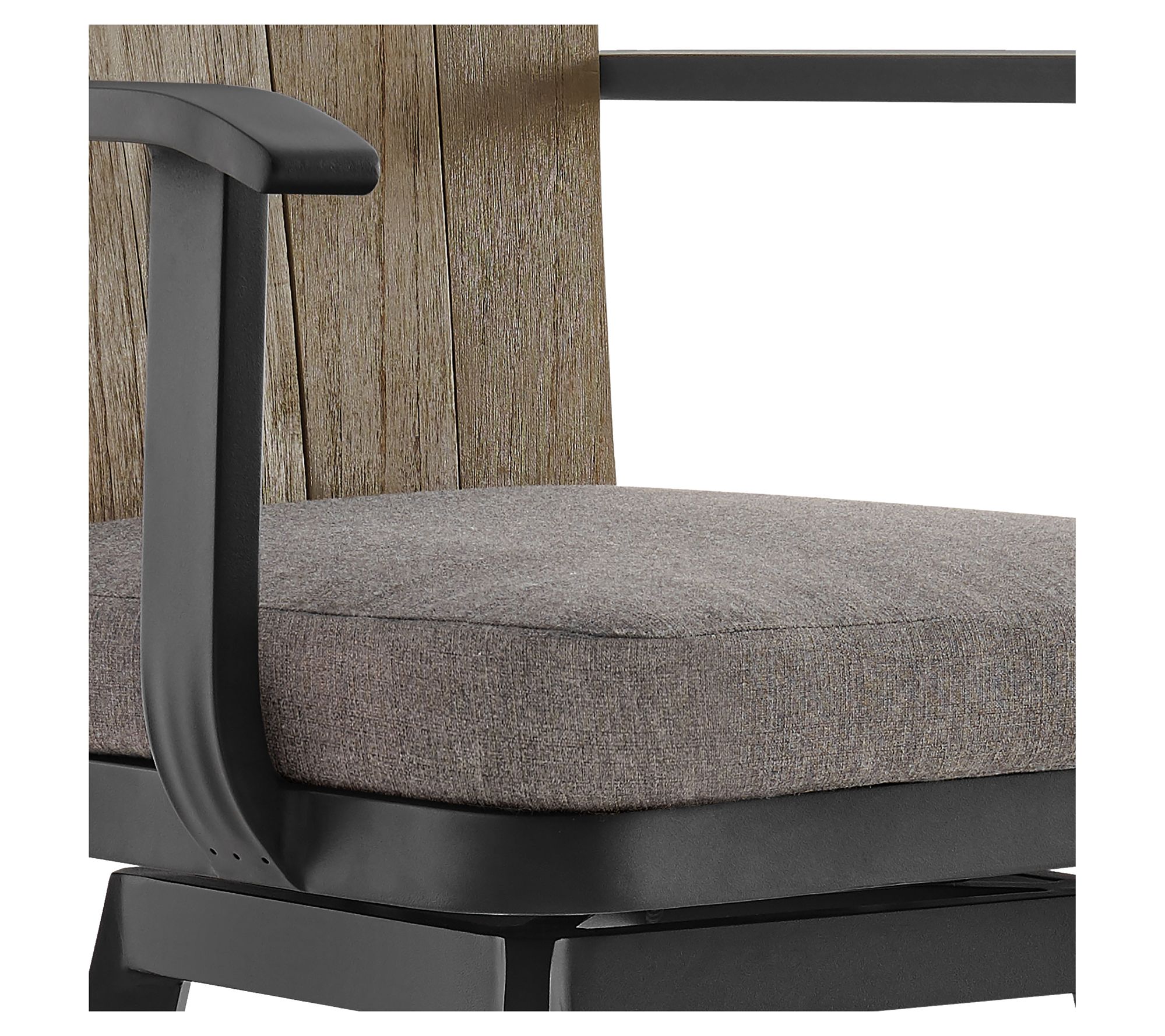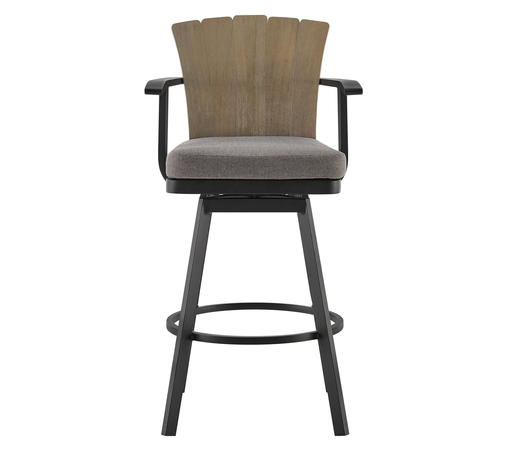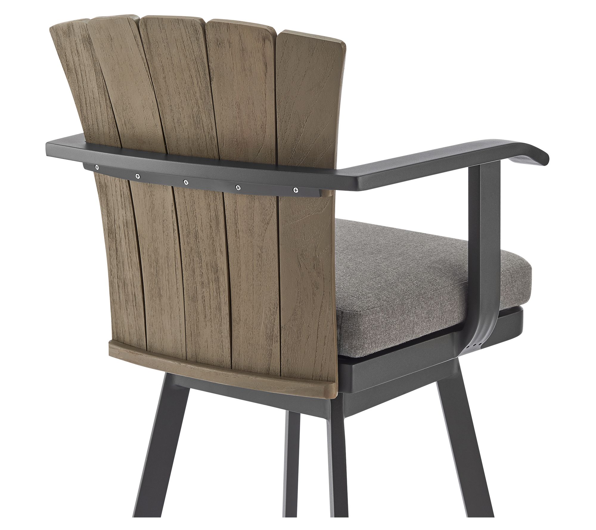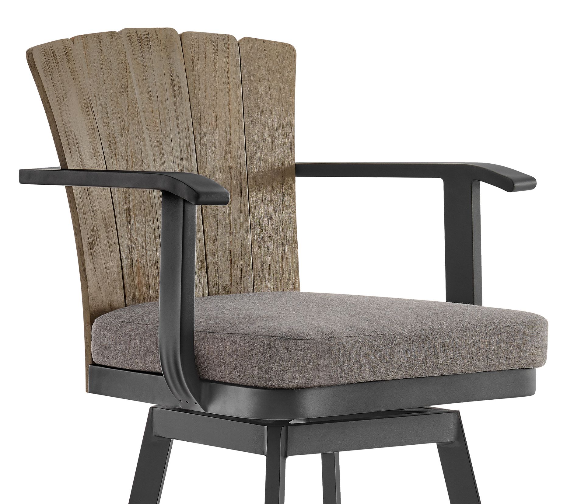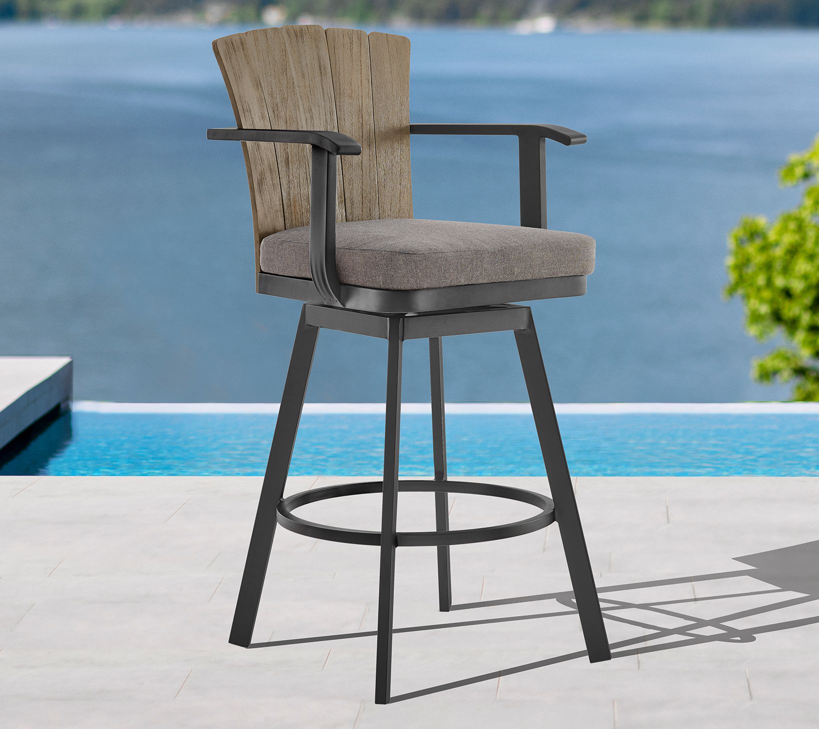 Elevate your outdoor entertainment space with the Armen Living Hazel outdoor swivel counter/barstool. The aluminum frame offers durability and modern charm, while the teak wood accents add a touch of natural warmth. Comfortable hook and loop removable cushions invite relaxation, making this stool an ideal seating option. Whether you're mingling at the bar or enjoying a meal at the counter, the swivel feature ensures easy interaction with your surroundings. From Armen Living.