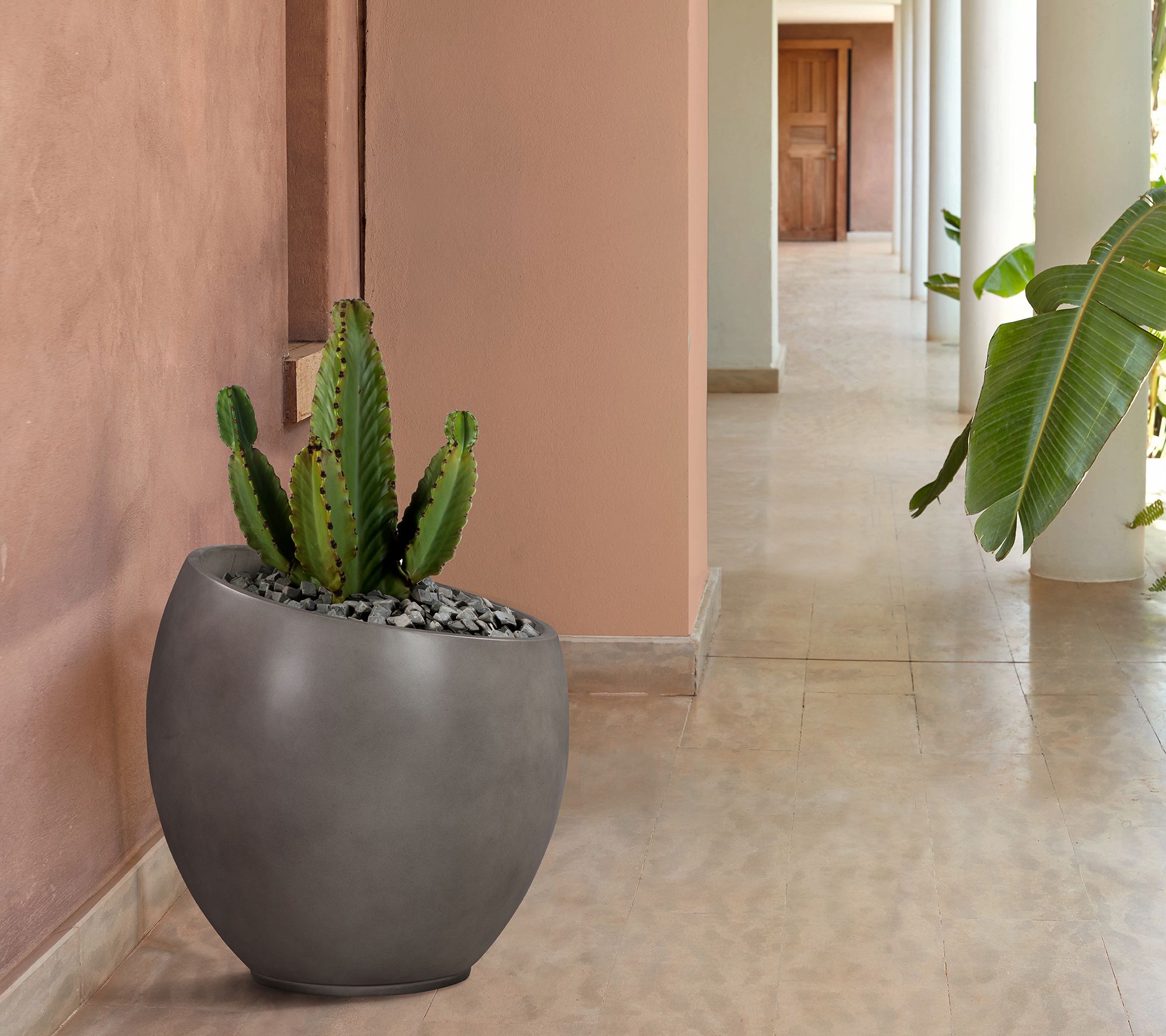 Add a gallery-worthy impact to your home with this Moonstone indoor and outdoor planter, designed to complement your living room, kitchen, home office, patio, or balcony. The cleverly asymmetrical design and versatile gray finish bring a fresh, modern touch to any setting, whether staged alone or paired for a dynamic display. From Armen Living.